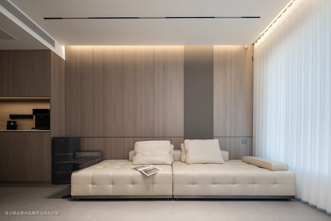 客厅采用无主灯设计,巧妙地营造出开阔而通透的空间感。灰色的地板砖宛如一幅淡雅的水墨画,为整个客厅增添了一份宁静与优雅。