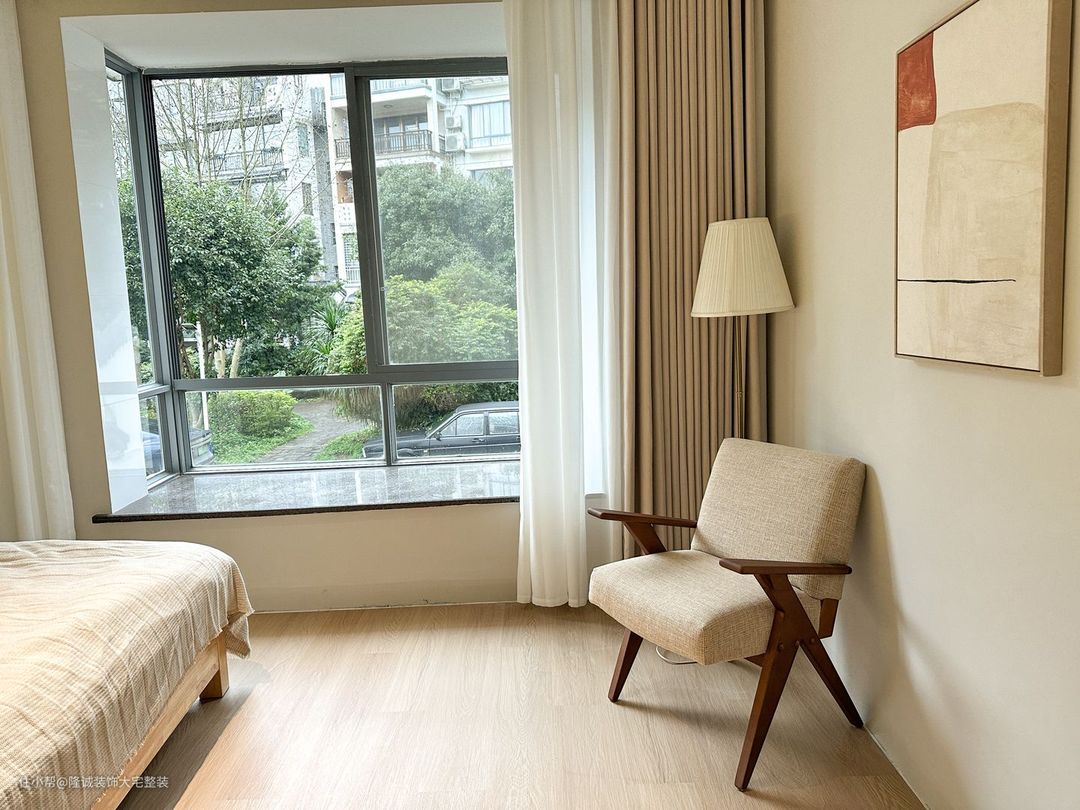 首先,从空间的整体布局来看,设计师巧妙地运用了原木材质,将各个区域自然衔接,营造出一种流畅而和谐的空间感。原木色调温暖而柔和,不仅让空间显得宽敞明亮,更增添了一份自然的亲切感。墙面、地板、家具乃至装饰品,都采用了原木材质,使得整个空间在视觉上达到了一种统一与和谐。 在细节软装方面,设计师更是倾注了心血。日式禅意的设计与布置,让空间增添了一份宁静与深邃。例如,客厅的茶几上摆放着一套精致的茶具,配以简约而优雅的瓷器,让人在品茗茶香的同时,也能感受到那份来自东方的禅意之美。此外,一些日式元素的加入,如屏风、和纸窗等,不仅丰富了空间的层次感,更让整个空间散发出一种淡淡的优雅与浪漫。