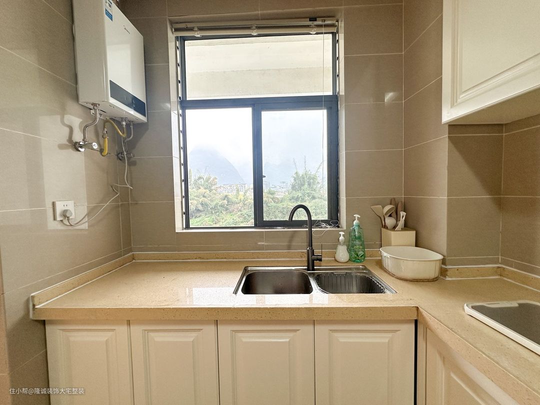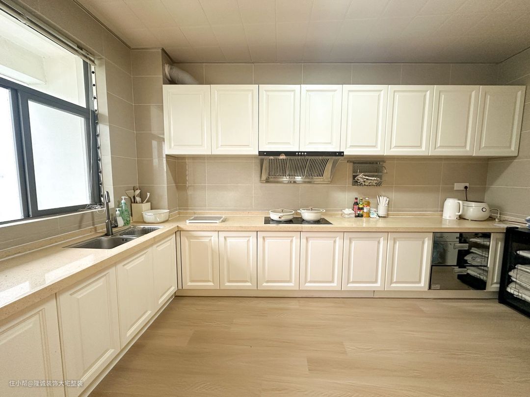 厨房的U型设计巧妙地利用了空间,使得整个厨房的布局既合理又实用。这种设计不仅提高了空间利用率,还使得下厨的过程更加流畅和便捷。 白色系的延续,使得厨房与整体风格保持了一致性。白色的墙面、橱柜和操作台,让整个厨房看起来明亮而整洁。这种色调不仅提升了厨房的采光效果,还营造出一种清爽、舒适的烹饪环境。