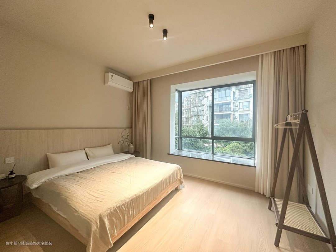 而现代舒适的床铺布置,则是这个空间的点睛之笔。柔软的床垫、舒适的枕头和温馨的床品,都让人感受到家的温暖和安逸。在这样的床上躺下,仿佛所有的疲惫都被一扫而空,只剩下宁静和安详。 整个卧室的布置既不失传统韵味,又充满了现代气息。每一处细节都体现出了主人的用心和品味,营造出一个安静舒适的睡眠氛围。无论是忙碌一天后的放松,还是深夜的静思,这个卧室都能为你提供一个理想的场所。