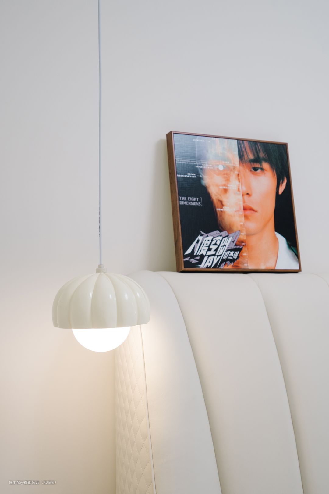 次卧以奶油白色为基调,布置一张白色软包床,奶白色云朵灯软糯可爱,让简单的空间增添了甜蜜温馨而唯美浪漫的氛围。