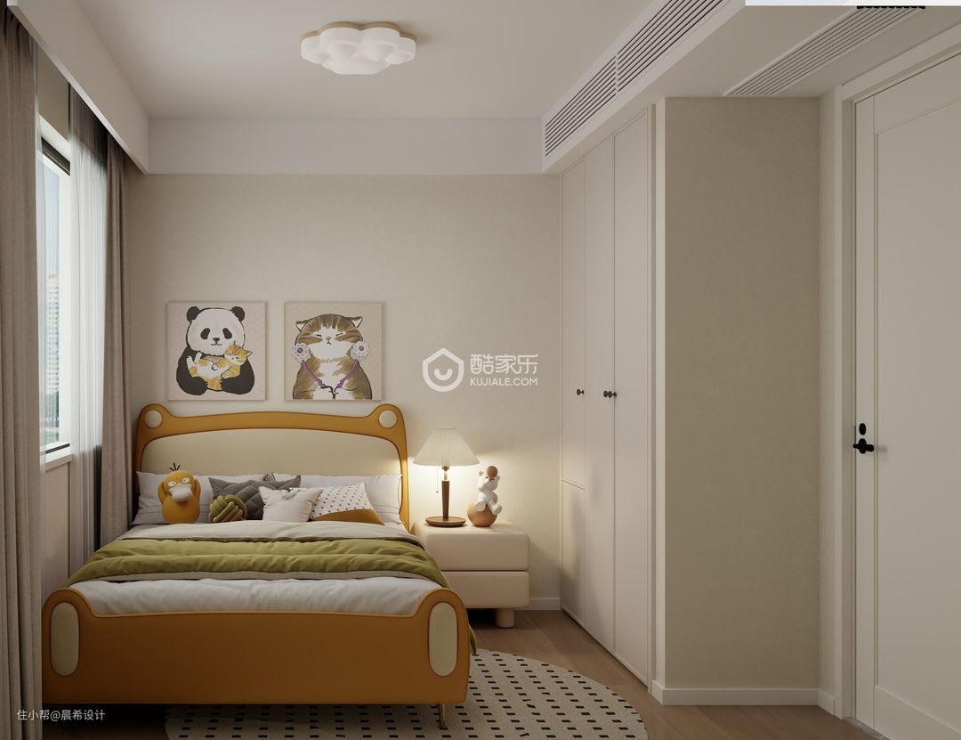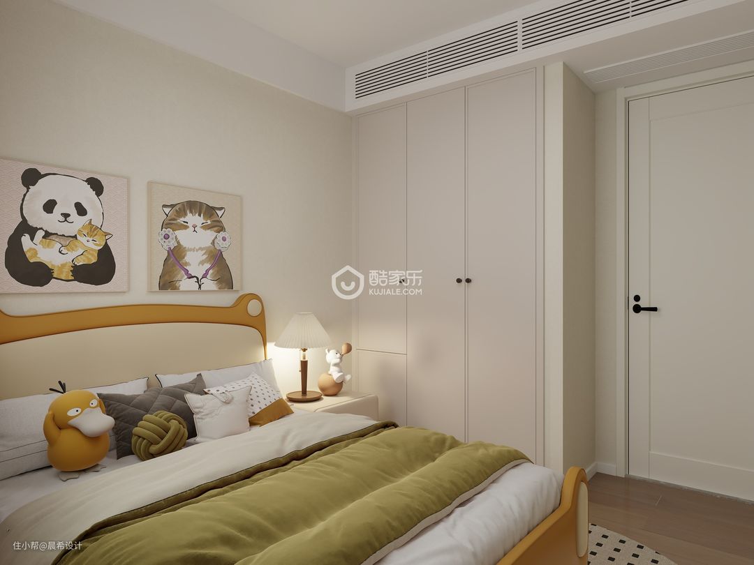 小孩房区域设计衣柜和小孩的儿童床,简单而富有童趣。