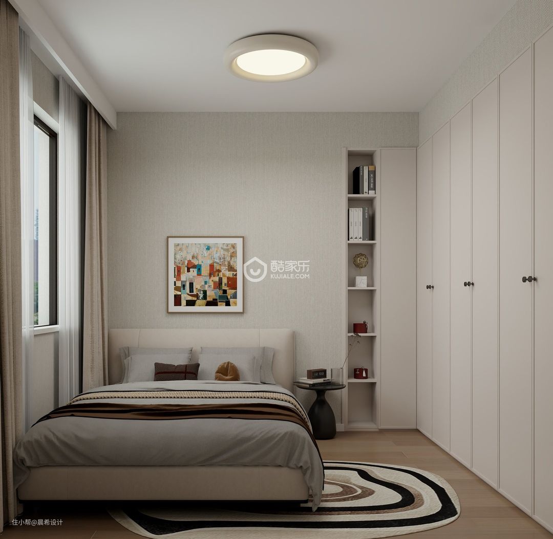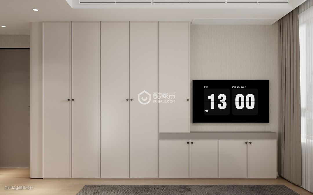 老人房这个空间移动了原有的房门的位置,增加了充足的储物柜空间,满足了储物的需求。