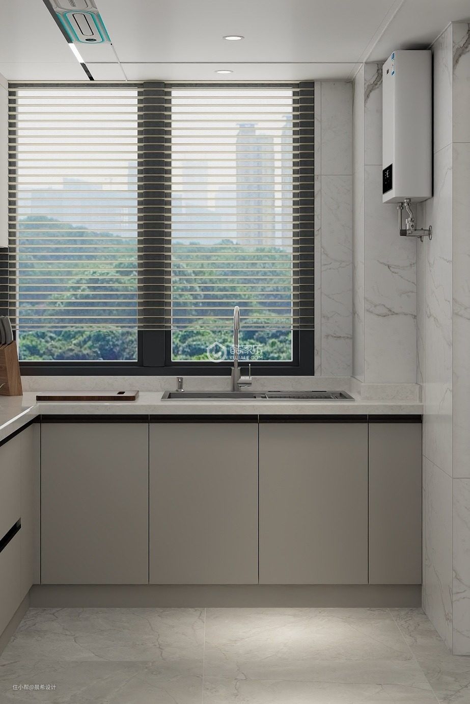 厨房空间设计u型橱柜,增加台面的使用空间,满足业主对于烹饪的需求。