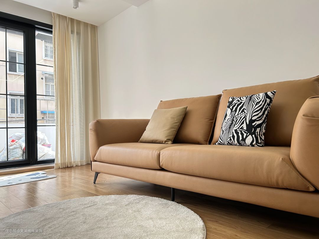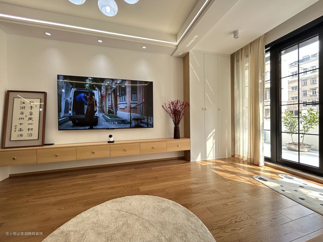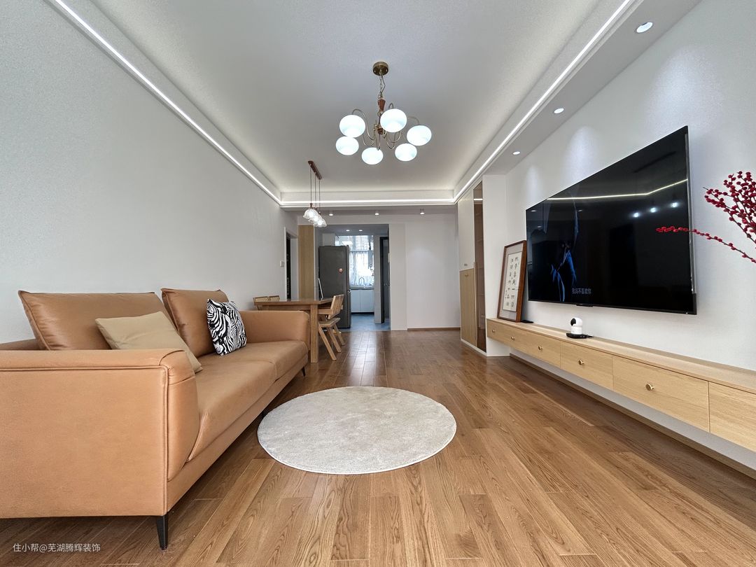 整体还是以奶油白为主,胡桃木的家具软装配色,营造出复古的感觉~客餐厅一体化,阳台拆除,空间通透又显大,室外光直射,慵懒的感觉舒适又惬意