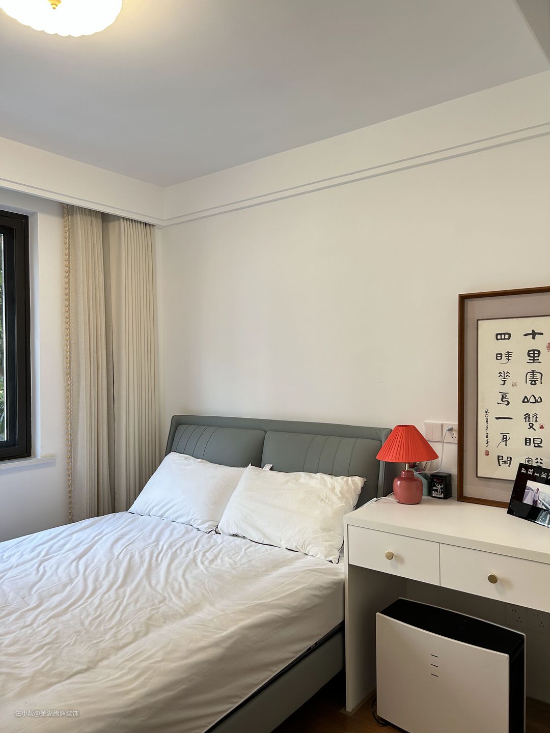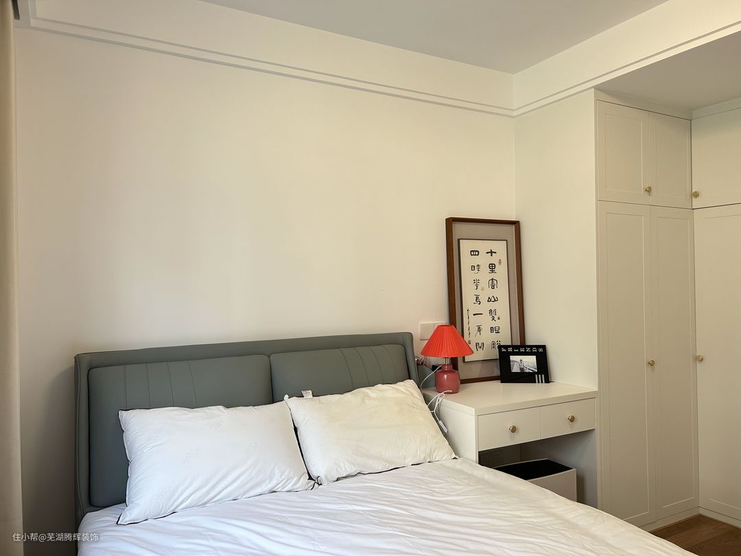 次卧的设计也非常喜欢。衣柜延伸出书桌,即节约了空间又增加了空间的功能,好看又实用。