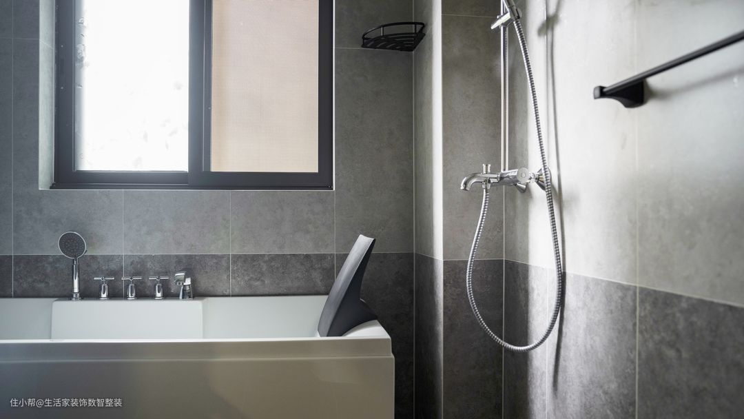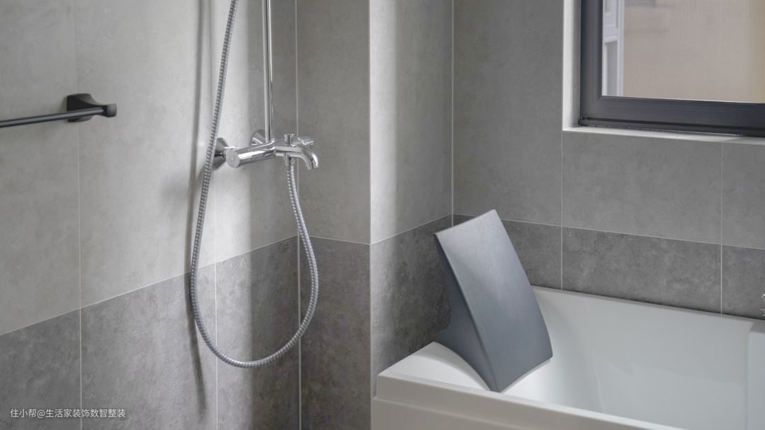 卫生间花洒浴缸双设计,既能淋浴又能泡澡,满足主人多种需求,整体设计灰白相间更显高级!