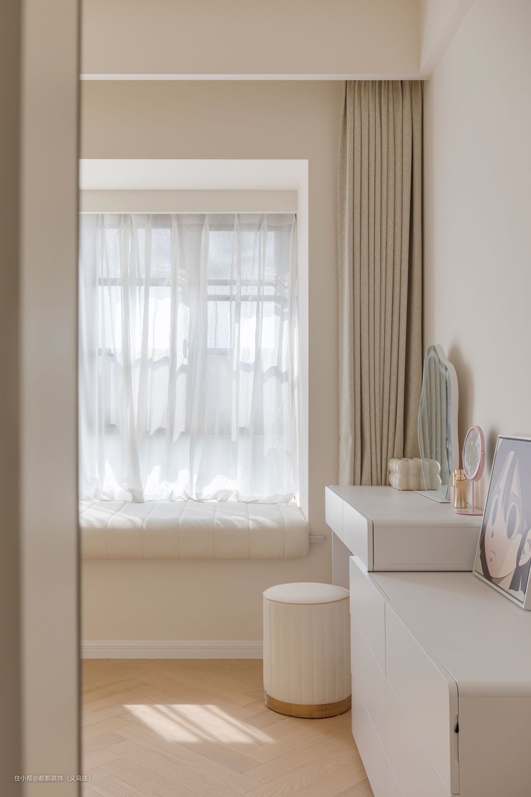 进入法式奶油风的次卧,仿佛走进了一个温馨而浪漫的童话世界。房间的一角摆放着一张华丽的梳妆台,上面摆放着各种精致的物品。飘窗则成为了一个舒适的休闲角落,柔软的垫子和温暖的阳光,让人可以在这里放松自己,享受宁静的时光。 房间的中心,无疑是那张诱人的床。它的柔软触感和优雅设计,让人迫不及待地想要扑上去,感受那份舒适和温暖。在这样的房间里,每一个细节都散发着法式的浪漫和高贵,让人陶醉其中,舍不得离开。