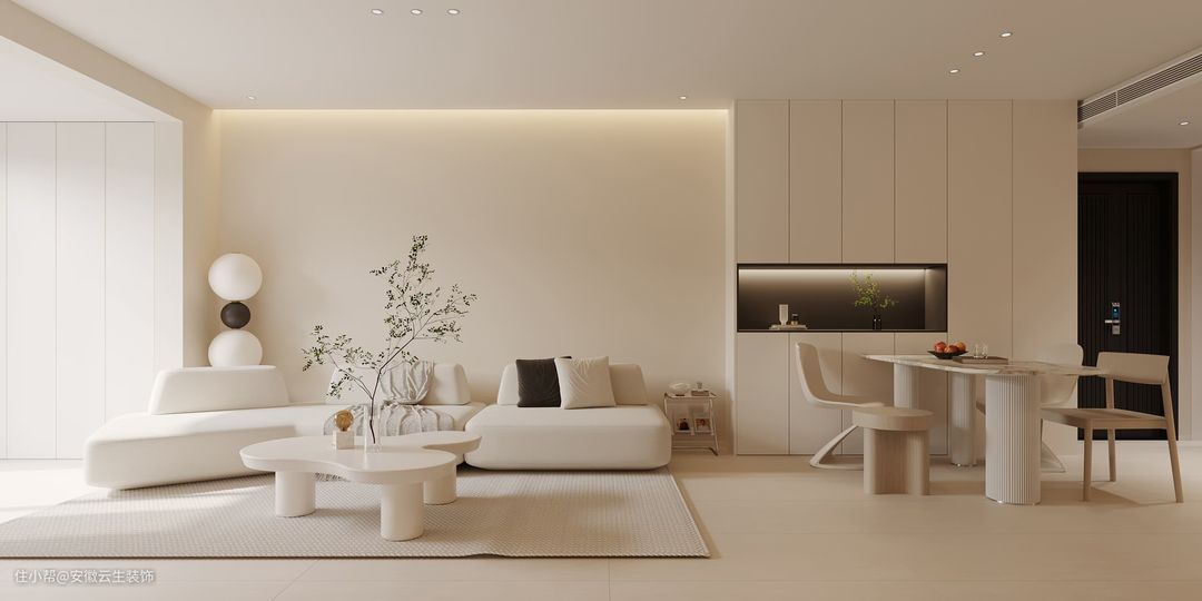 奶油风最直观也是最核心的特征在于:简单干净直爽的硬装空间。软装的搭配,要温柔、细腻,软装与硬装的搭配要协调,色调统一。在造型与材质上,还要凸显可爱软萌的气质。