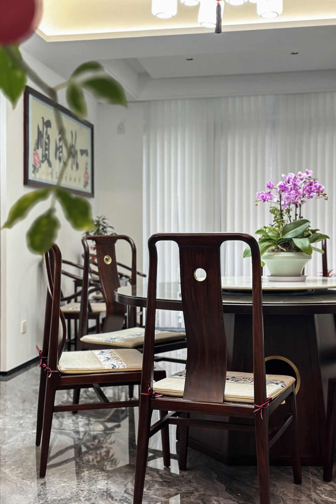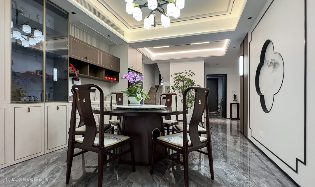 沉稳、精致不失韵味的新中式餐厅,木质的温润质感,更易营造宁静的就餐环境,静静融入素雅的东方气质。