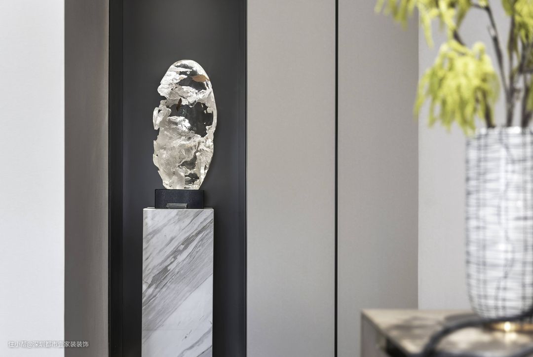 主卧,是主人品位的展示,在一片静谧祥和的空间里,既能感受男主人淡雅、温润的品格,又能体现女主人自信、优雅的个人魅力。细节处的摆件、灯饰、绿植点缀,床品的材质选择,无一不体现主人非凡的艺术品位。在这里,设计师注重自然光的采集,更给人一种温暖惬意的舒适感。