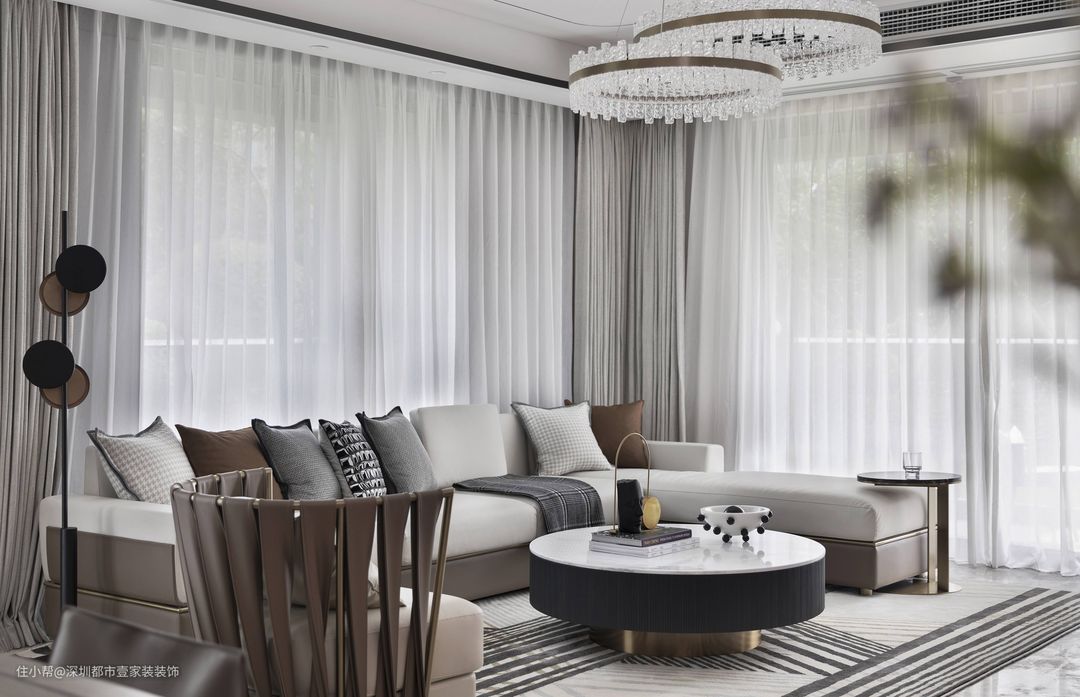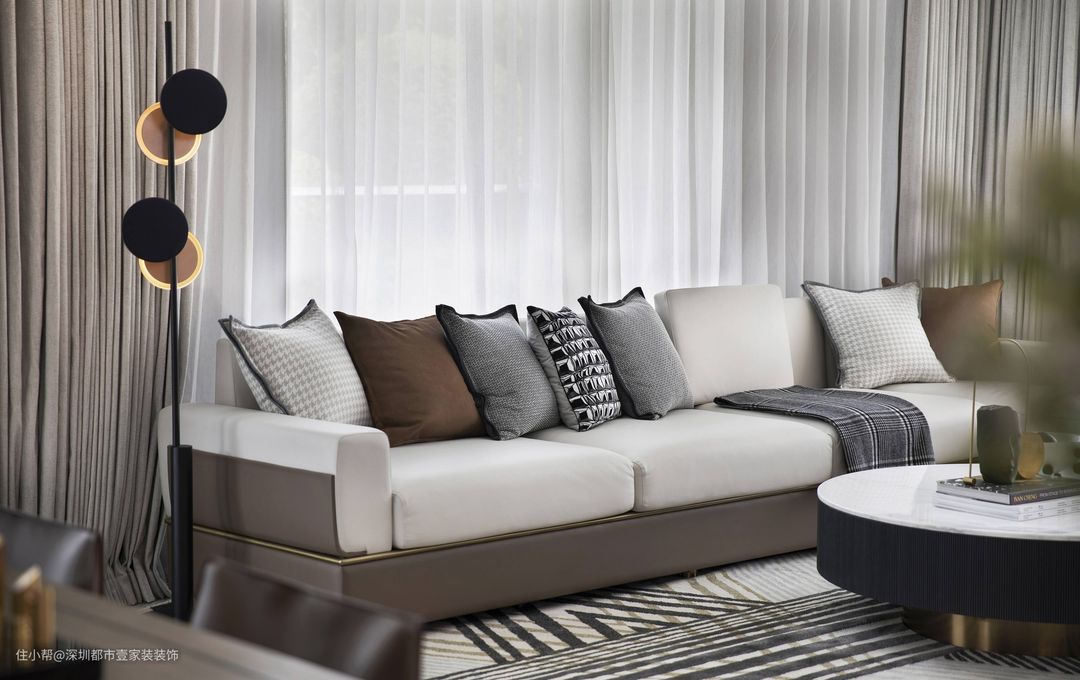现代低奢风格,最能表达“常乐之州”的都市情怀。设计师注重功能和空间组织,崇尚大气低奢的构成工艺,造型简洁,以咖啡色调打底,加上灰色调家私,细节处再缀以金属,整体营造出现代英伦的绅士雅致氛围。