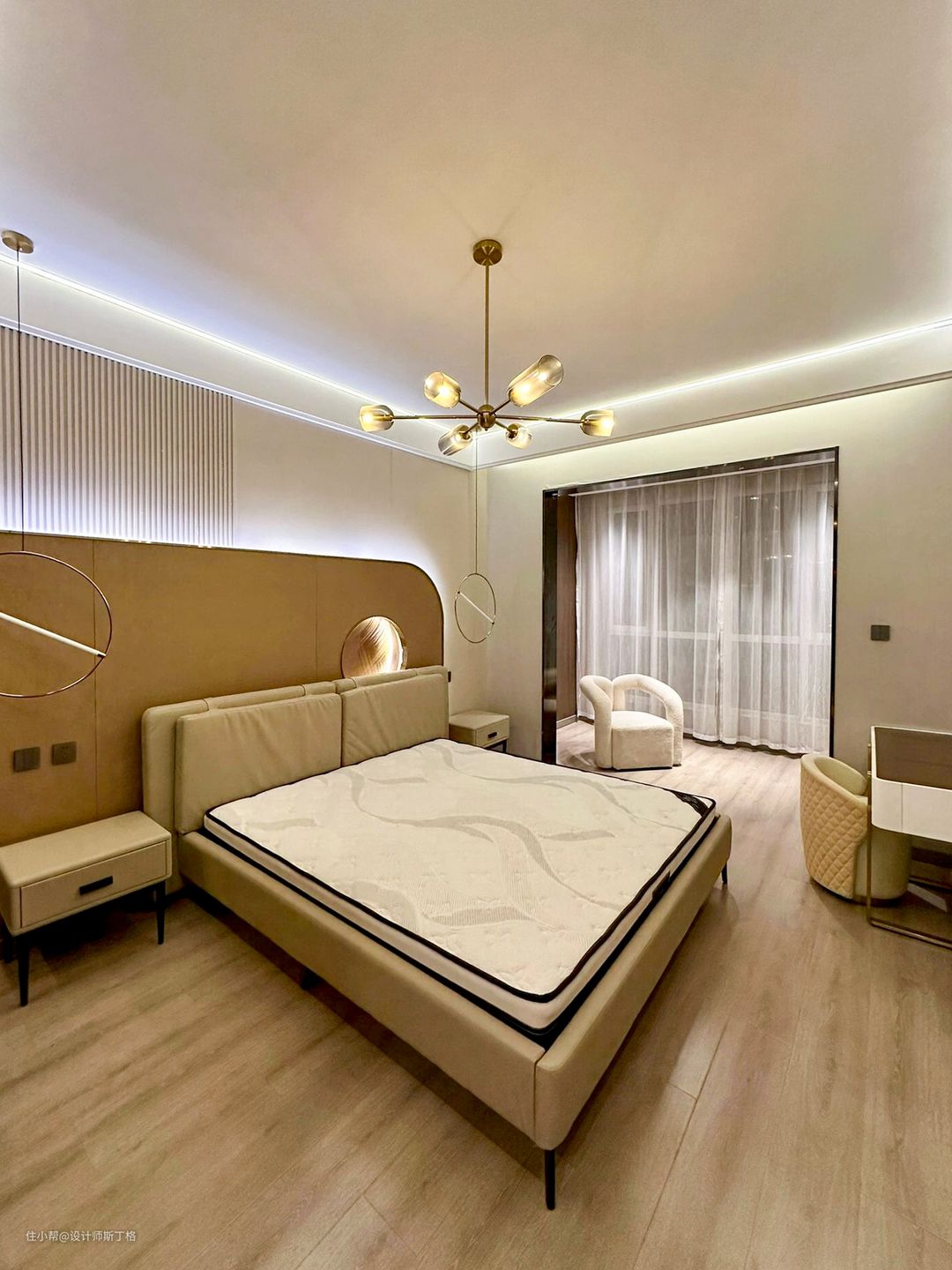 主卧采用木质和米色的搭配,不仅显得温馨,还给人一种自然放松的感觉。这样的色调搭配,不仅适合休息,也能让人在忙碌的生活中找到一丝宁静。