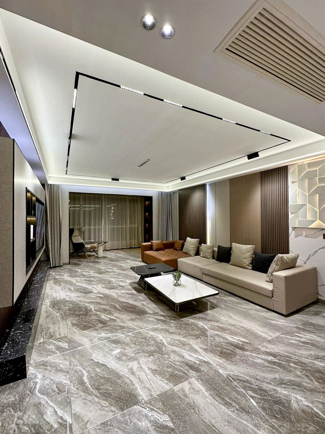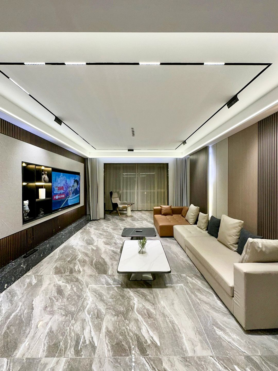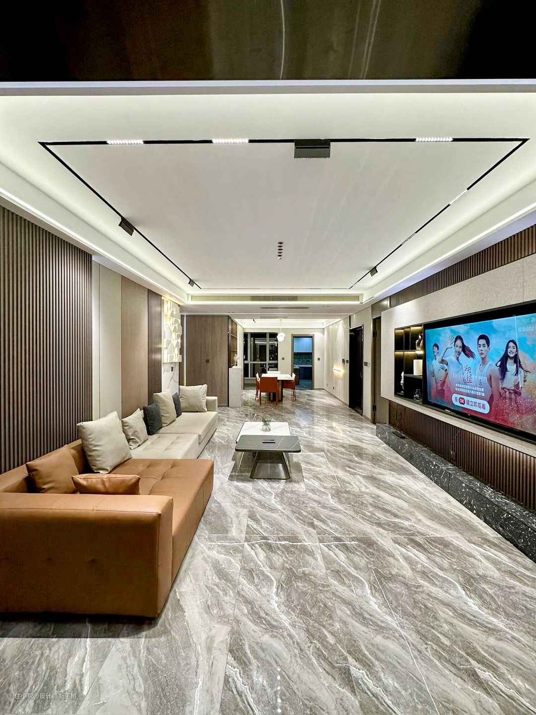 客厅的设计真是让人眼前一亮!简洁而又不失格调,白色和棕色的搭配恰到好处,显得既温馨又明亮。大理石纹理的地板,搭配深色木纹的墙面,让整个空间更加有层次感。长方形白色桌子简洁大方。