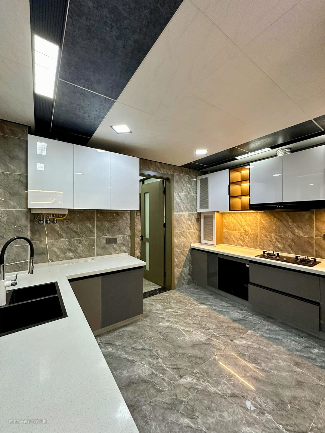 灰色与白色的主色调,犹如一曲优雅的交响乐,在空间中轻轻奏响。 🌈地面铺设的大理石纹理瓷砖,增添了一份自然与质感。 🌸橱柜则是白色的,简洁而大方。