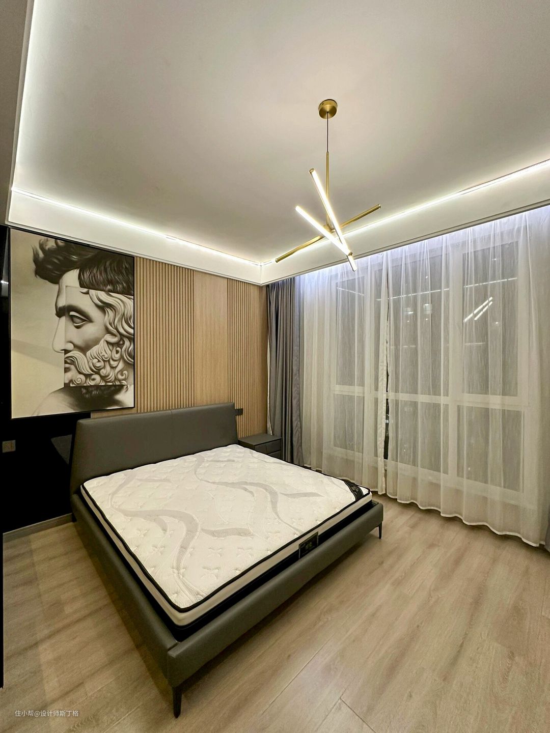 长辈的房间用的是比较简洁的装饰,以白色和木色为主,让人瞬间感受到家的宁静与舒适。 💡金色的吊灯,造型简约而现代,为房间增添了一抹亮丽的色彩。 🌸半透明的窗,为房间增添了一份浪漫与优雅。当阳光洒进房间,窗帘轻轻飘动,仿佛在为这个空间注入生机与活力。 🌳浅色木地板,让整个空间更加明亮、宽敞。