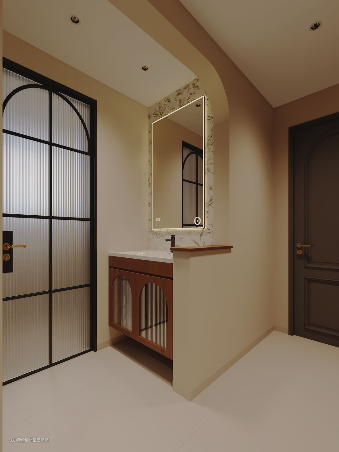 原先的主卫空间 利用率较低 我们重新规划空间 重组拆解后 变成一个钻石型浴室 独有一种庄严个性的气质