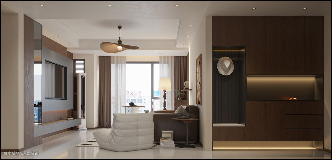 作为落尘区业主像充分利用空间。挂衣卡座及放置区合理分区,兼顾储物人性化设计,加之感应灯使回家更有氛围感