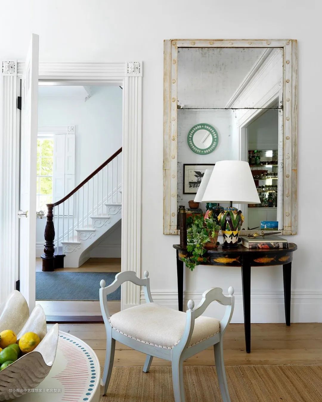 设计师把先所有墙壁都用纯白色粉刷,然后加入古董和定制的家具装饰品,让空间既保持简单又不失活力。