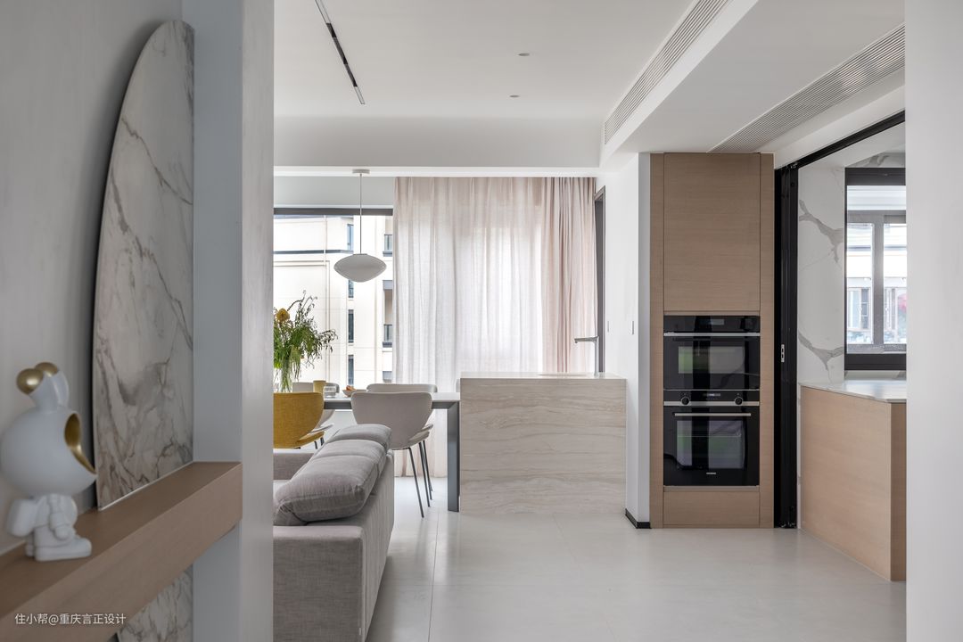 在选择言正之前业主把排得上号的各个类型公司基本上都了解过,在遇到言正提出餐厅边缘化的思路让业主感觉到我的房子还有更多可能性,因此也顺理成章的有了该落地案例;也特别感谢业主方、配套商家对于设计的充分尊重与支持共同去完成了居住者理想的空间。