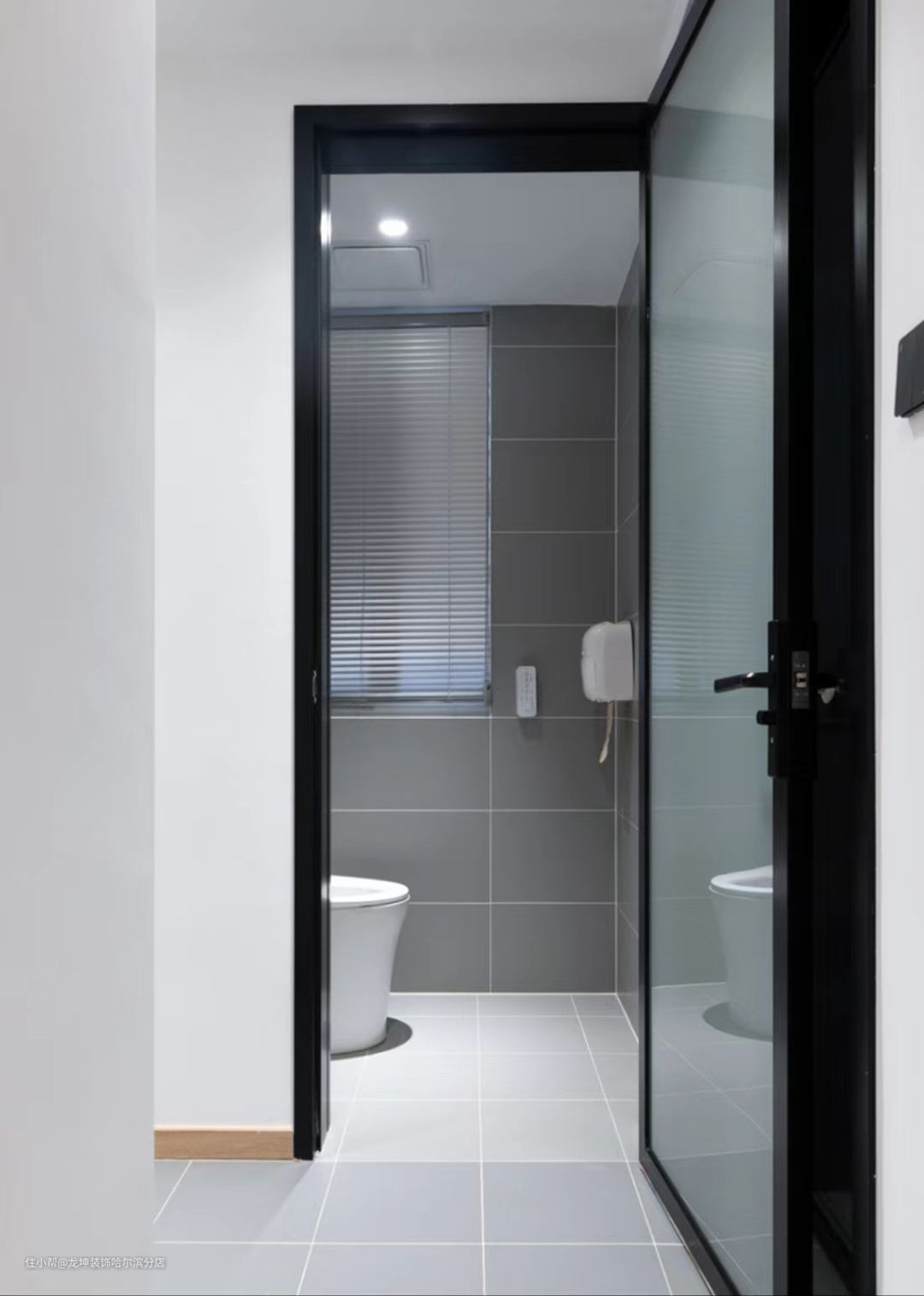 原始户型图中的卫生间空间较小,满足不了业主干湿分区和独立淋浴需求,设计师利用一部分空间,打造出三分离卫生间,使得每个区域的使用更加独立。三分离将洗漱、马桶、淋浴区都分开,功能互不干扰,而且干净卫生,提高了业主的生活舒适度。