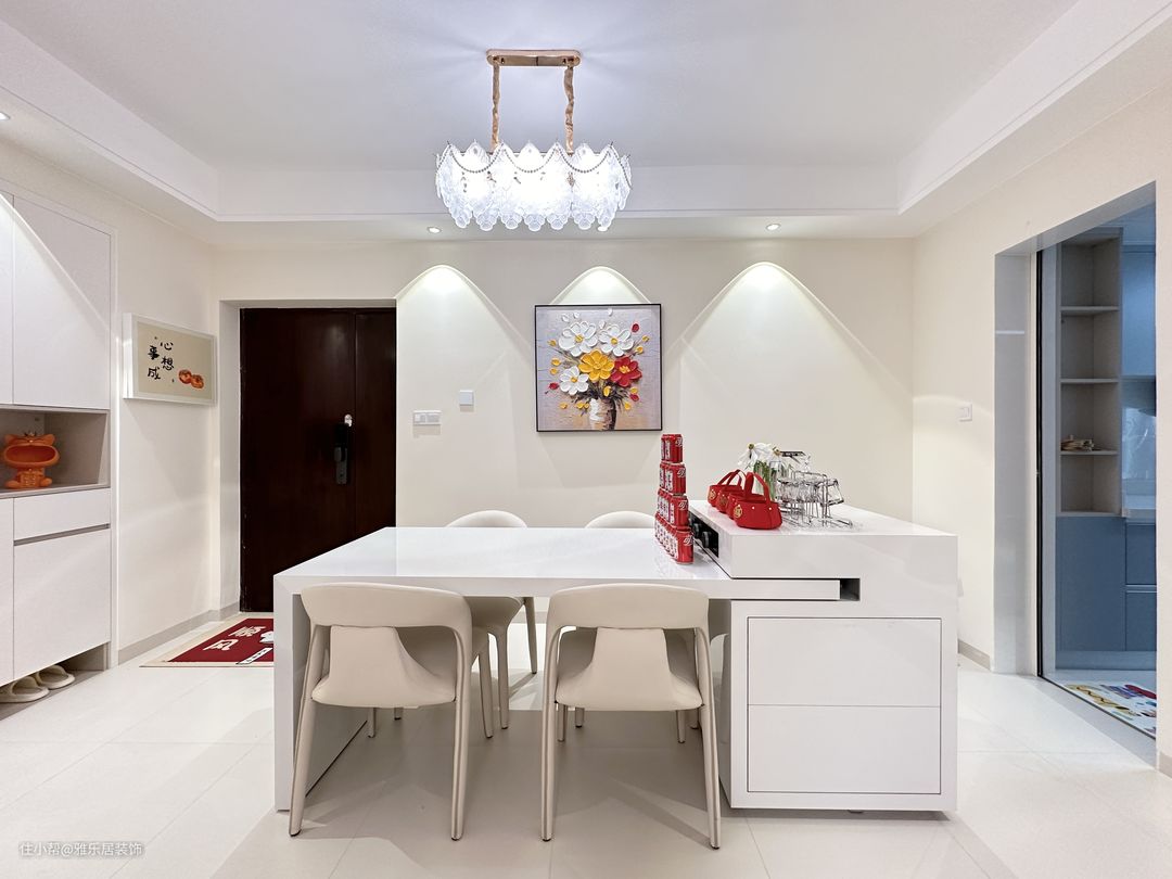 客餐一体,配置岩板可伸缩餐桌,同时容纳8-10人都没问题!侧边预留轨道插座,满足日常使用,安全又便捷。岛台下方的储物空间减轻收纳压力。