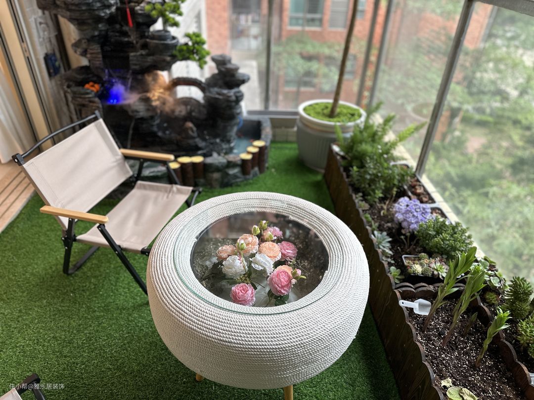 景观阳台打造绿植区,配上山水小鱼池,平时坐在这里放空可太舒服了!