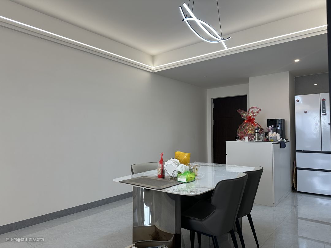 餐桌:大理石的餐桌,时尚又方便卫生打理。
