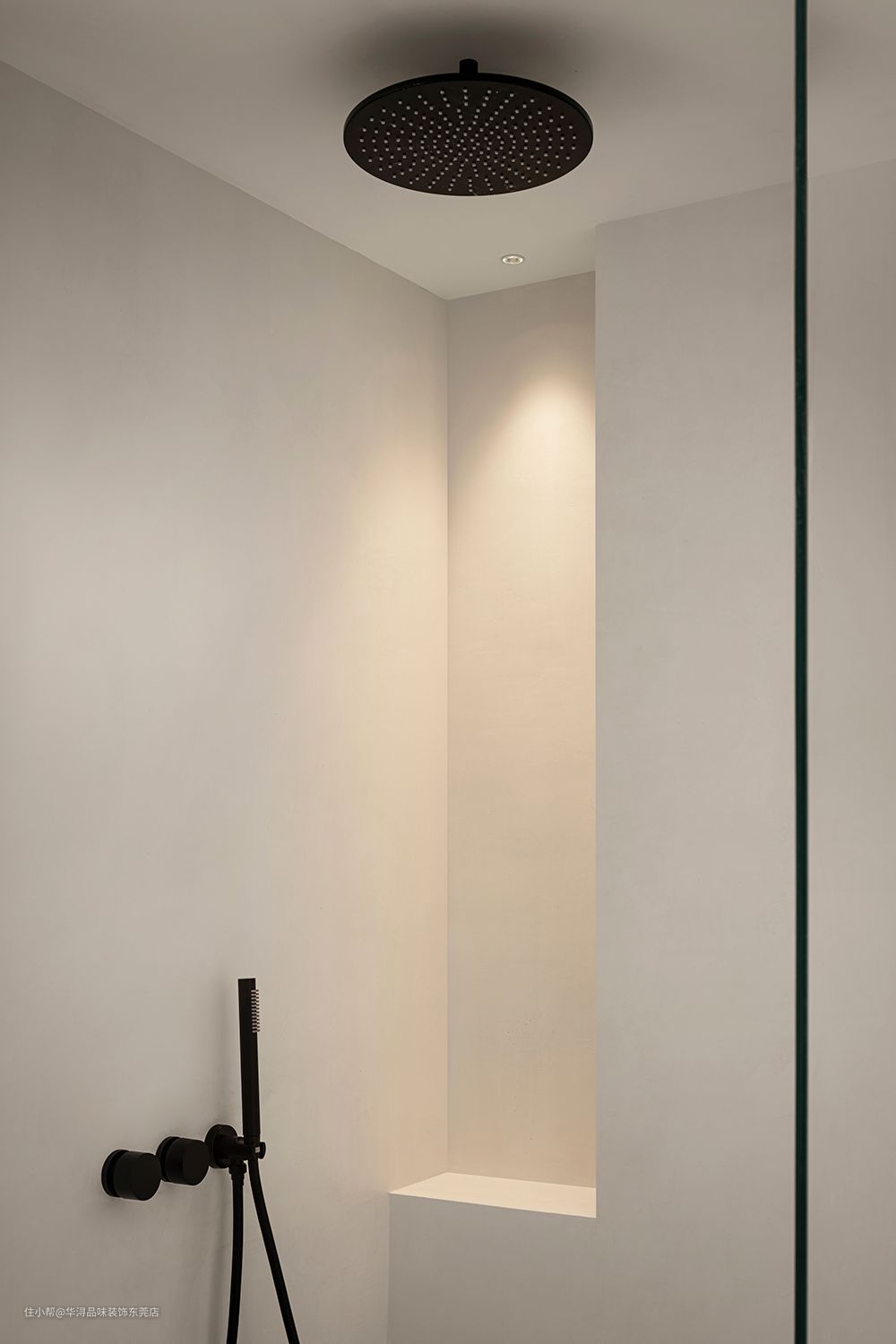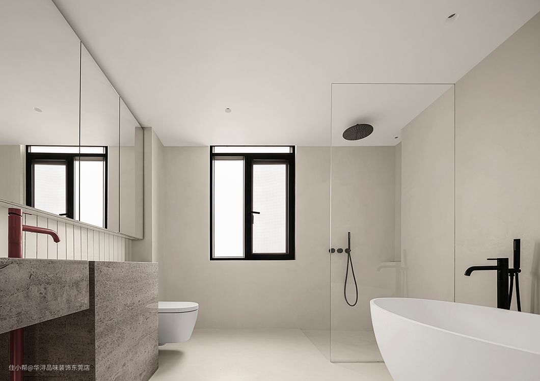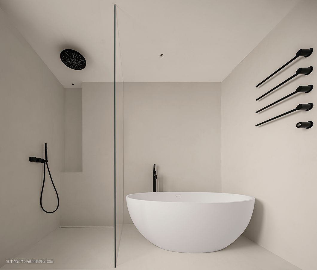 浴室空间纯粹洁白,如同雪花般纯净无瑕,给人以清新脱俗之感。灰色石材洗手池稳重而坚固,其独特的纹理和色泽为浴室增添了一抹自然的韵味。玻璃元素的巧妙运用,实现了干湿分离的效果,既保证了空间的通透感,又提升了使用的便捷性。