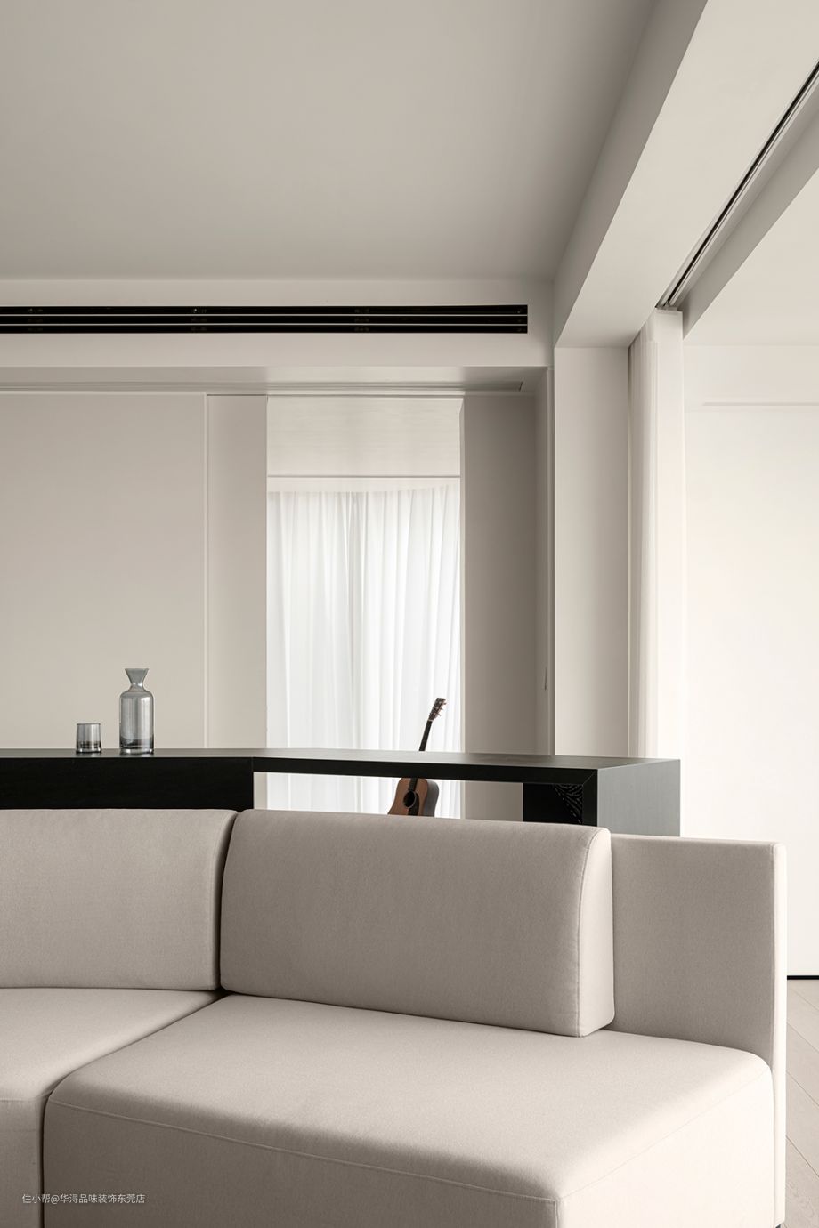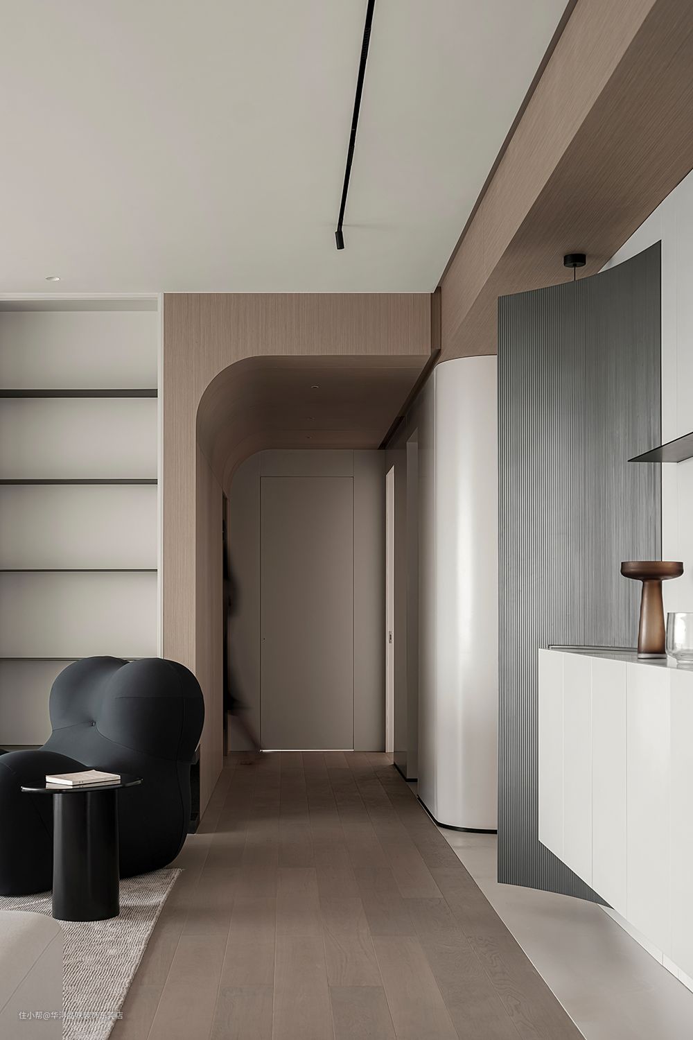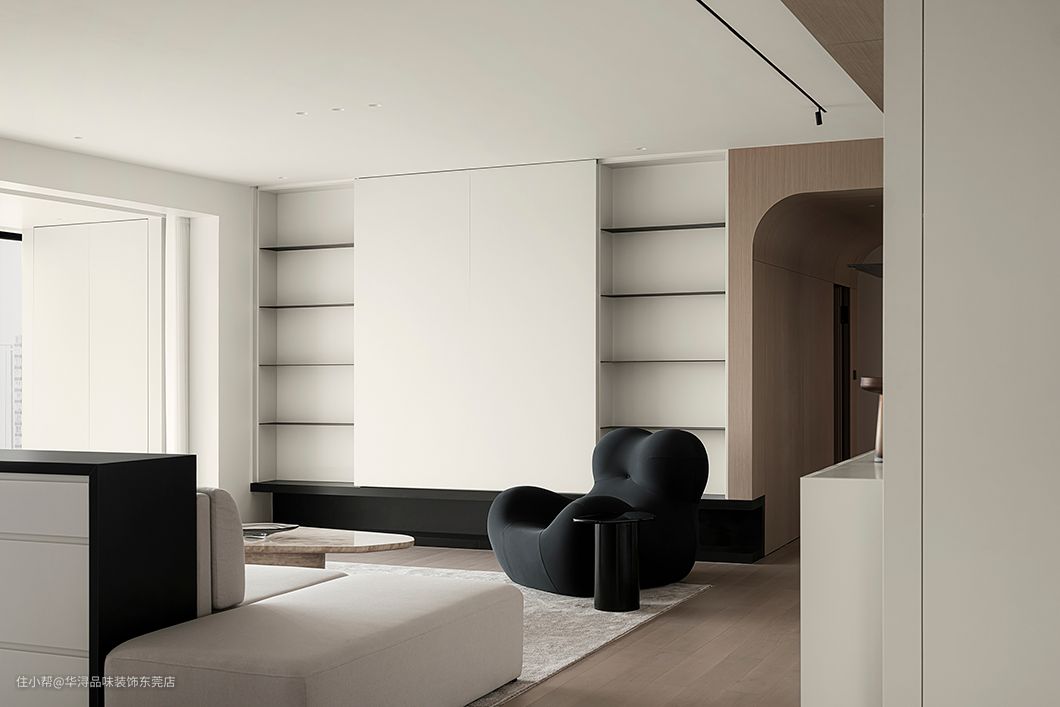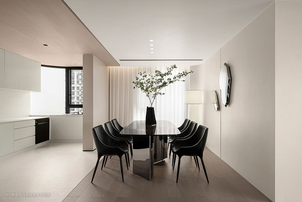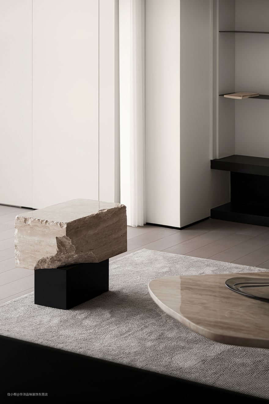 黑白色交织的客厅,简约中透露出强烈的反差魅力。自由的布局赋予了每个物件独特的生命力,它们相互呼应,形成深层次的情感互动。黑色岛台静默而庄重,大提琴的优雅旋律轻轻打破这份宁静,带来几分灵动与生机。而那张历经岁月洗礼的石桌,其独特的肌理仿佛诉说着无数故事,为整个空间增添了丰富的趣味性和艺术气息。在这里,简约与美学艺术完美融合,共同演绎出一场视觉与听觉的盛宴。