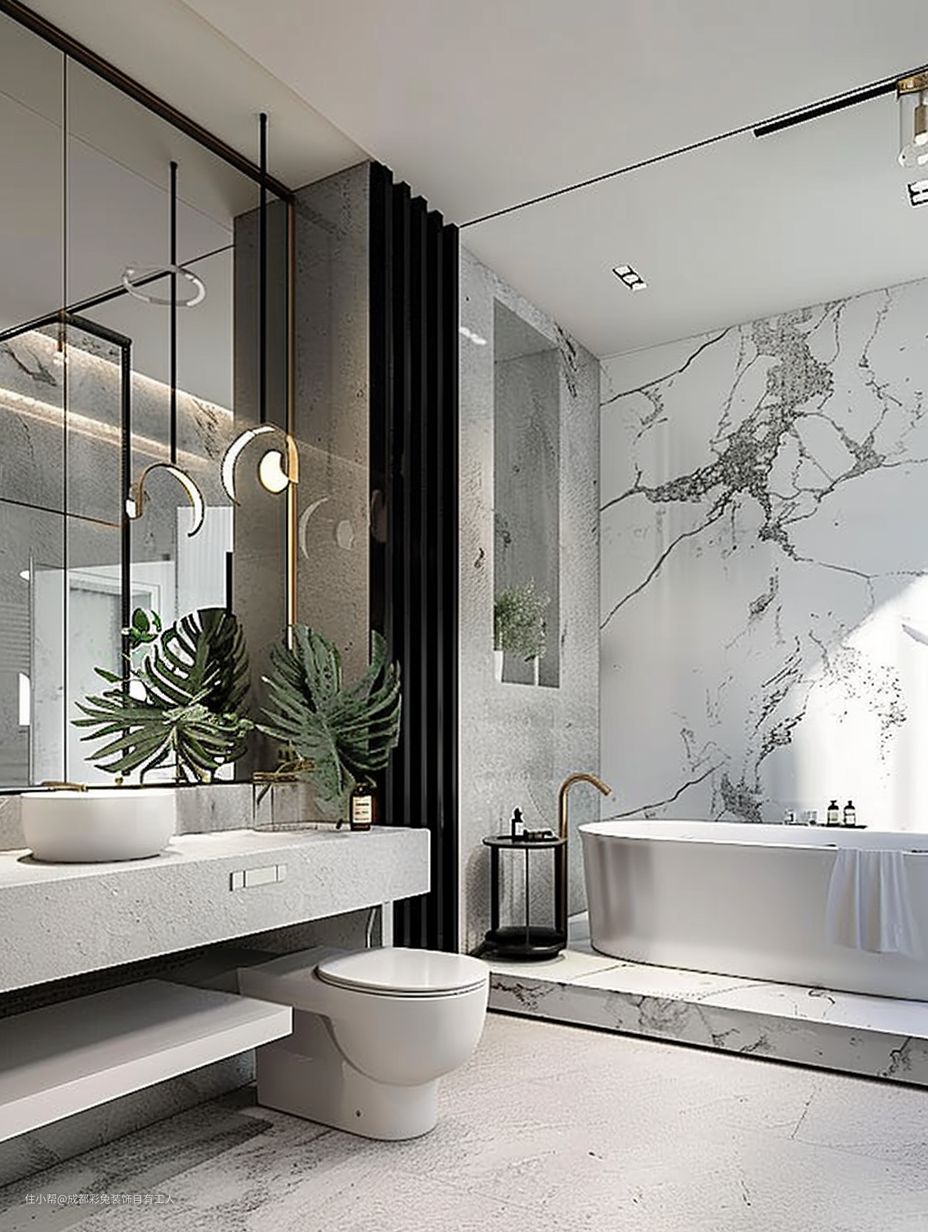 白色调瞅着就干净。三分离设计,互不打扰。吊灯、瓷砖铺贴,瞅着就好看。壁龛设计,能放不少东西。