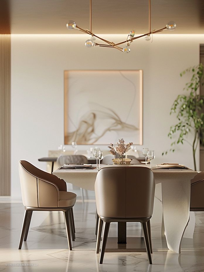 绿植放餐桌上,瞅着就得劲。餐桌椅一套整得贼拉好看,瞅着就有食欲。