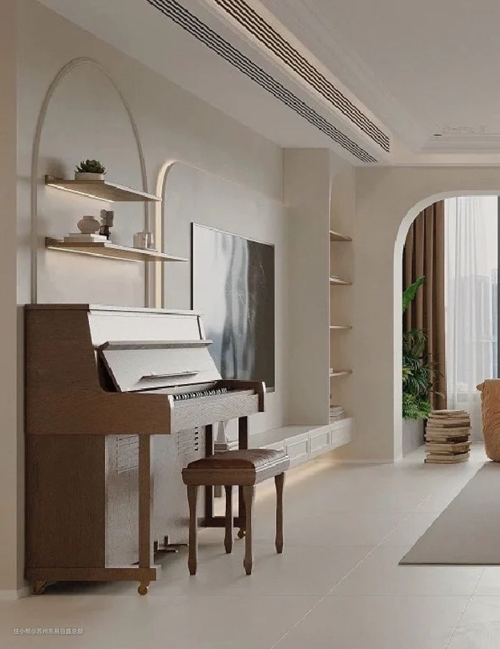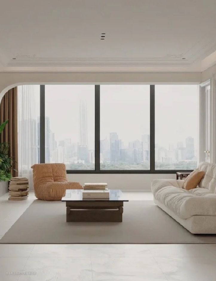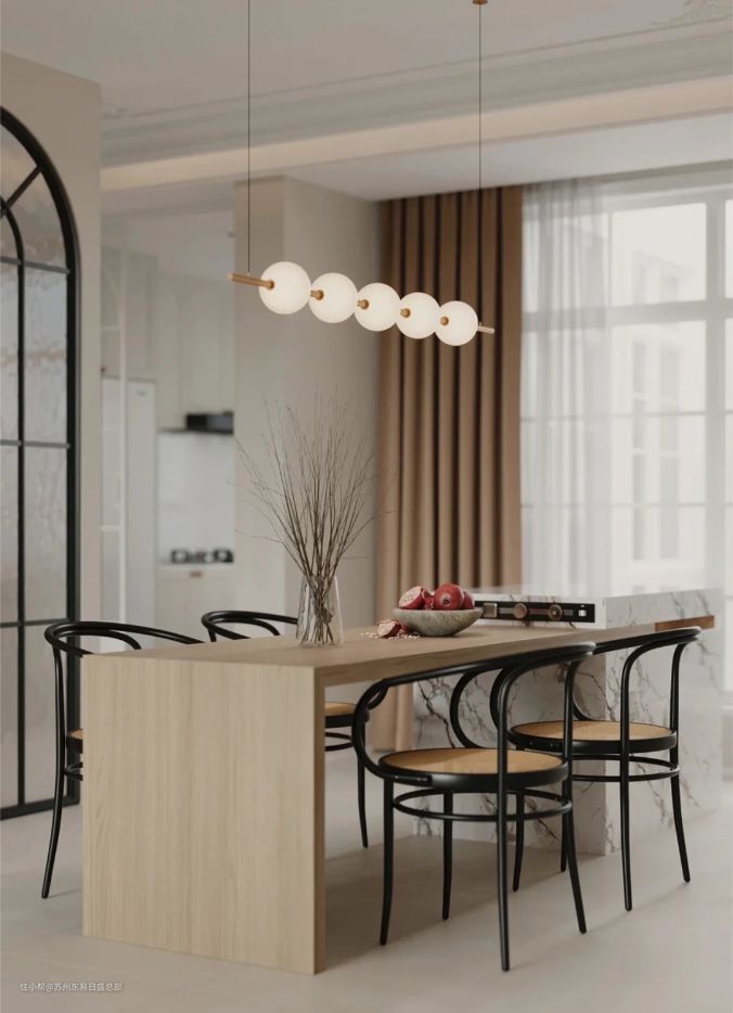 两侧采光,增强客餐厅的通风性和开阔感。弧形元素的运用让空间更加柔美、平和