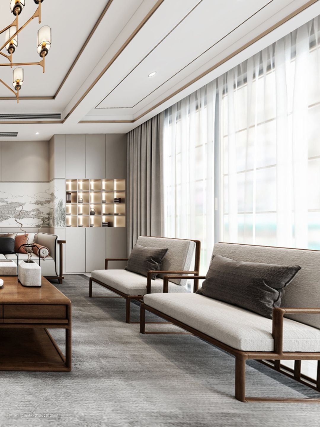 本案注重明亮和简洁,多采用天然材质如棉麻、原木等,配以现代化的线条和布局。大面积使用自带禅意的木质元素,彰显淡雅和高级💫 沙发背景墙的设计别出心裁,工笔画与木饰面板的搭配,不仅加深了空间层次感,更让古典与现代元素完美融合🌟 新中式家具也不同于传统中式的厚重与繁复,更加注重实用性和舒适性。例如,沙发和床多采用现代简约设计,但又保留了中式元素🌿 此外,新中式风格也注重与环境的和谐共处。在家中摆放一些绿植和自然元素,不仅能增加室内的氧气含量,还能让人的心情更加愉✨