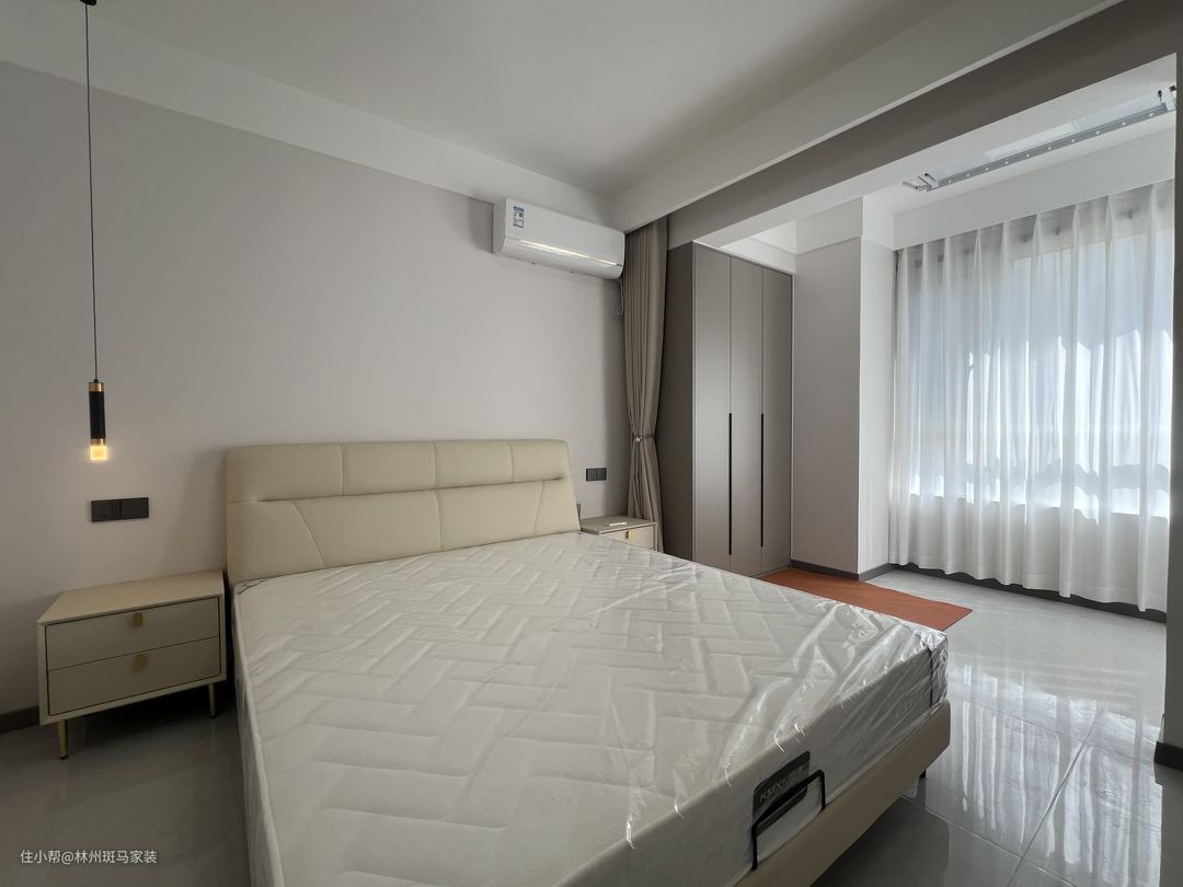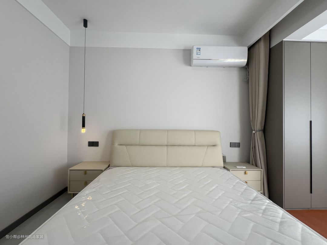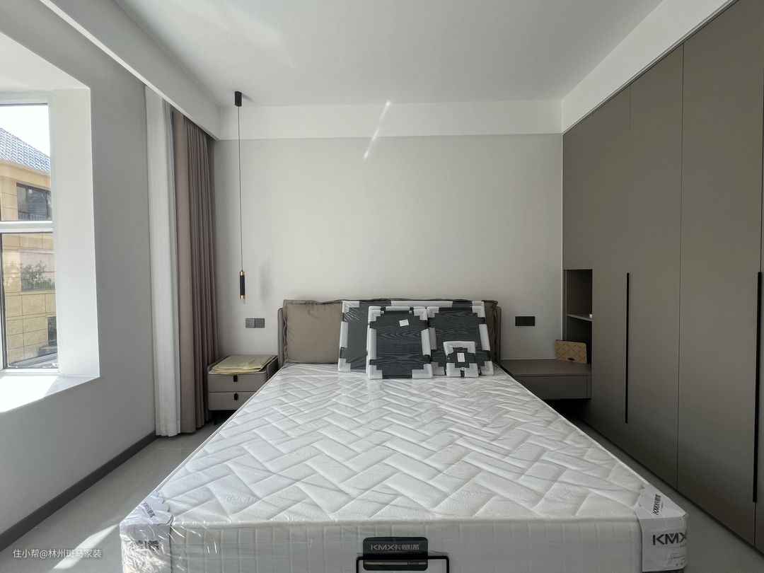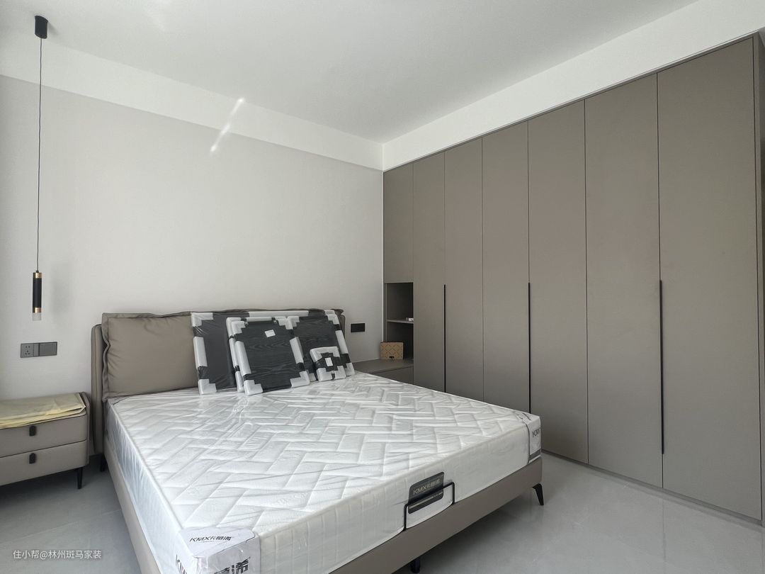 主卧整体设计以现代简约为主,做了灰色的一门到顶的衣柜,长衣区短衣区功能齐全,满足了日常的使用。以最基础的颜色来提供简约大方的氛围。