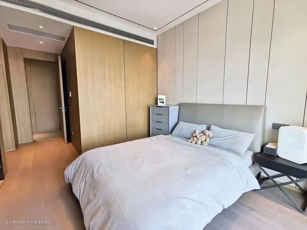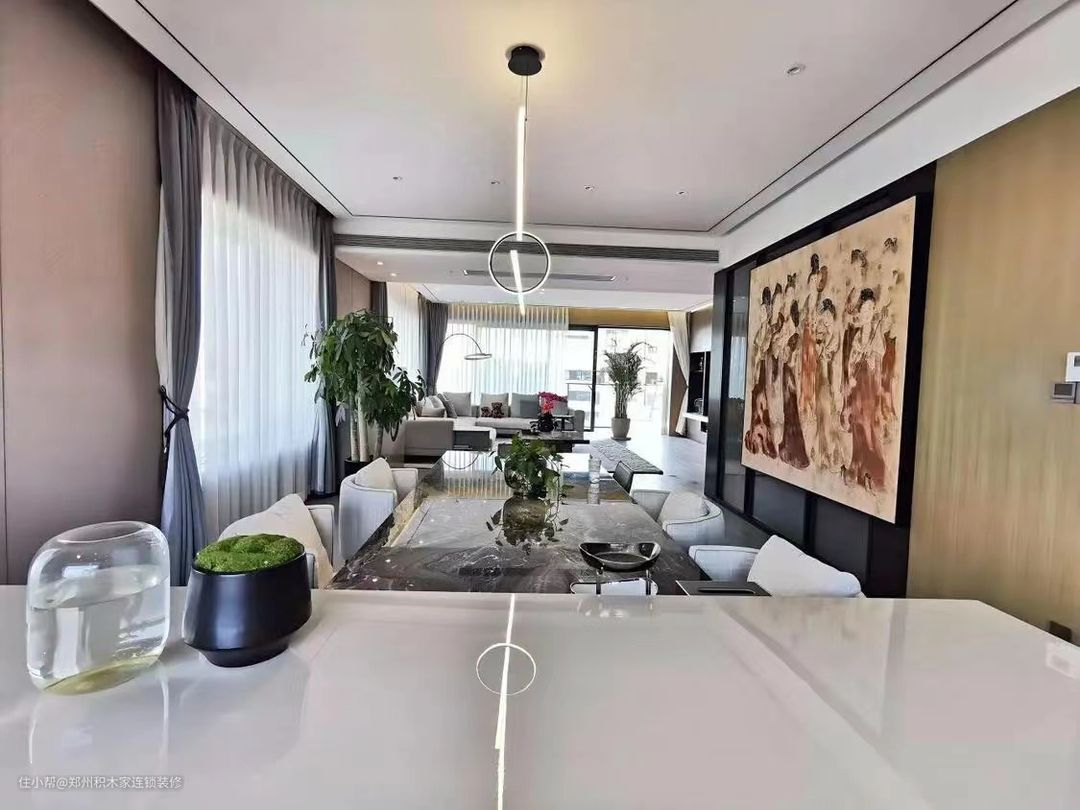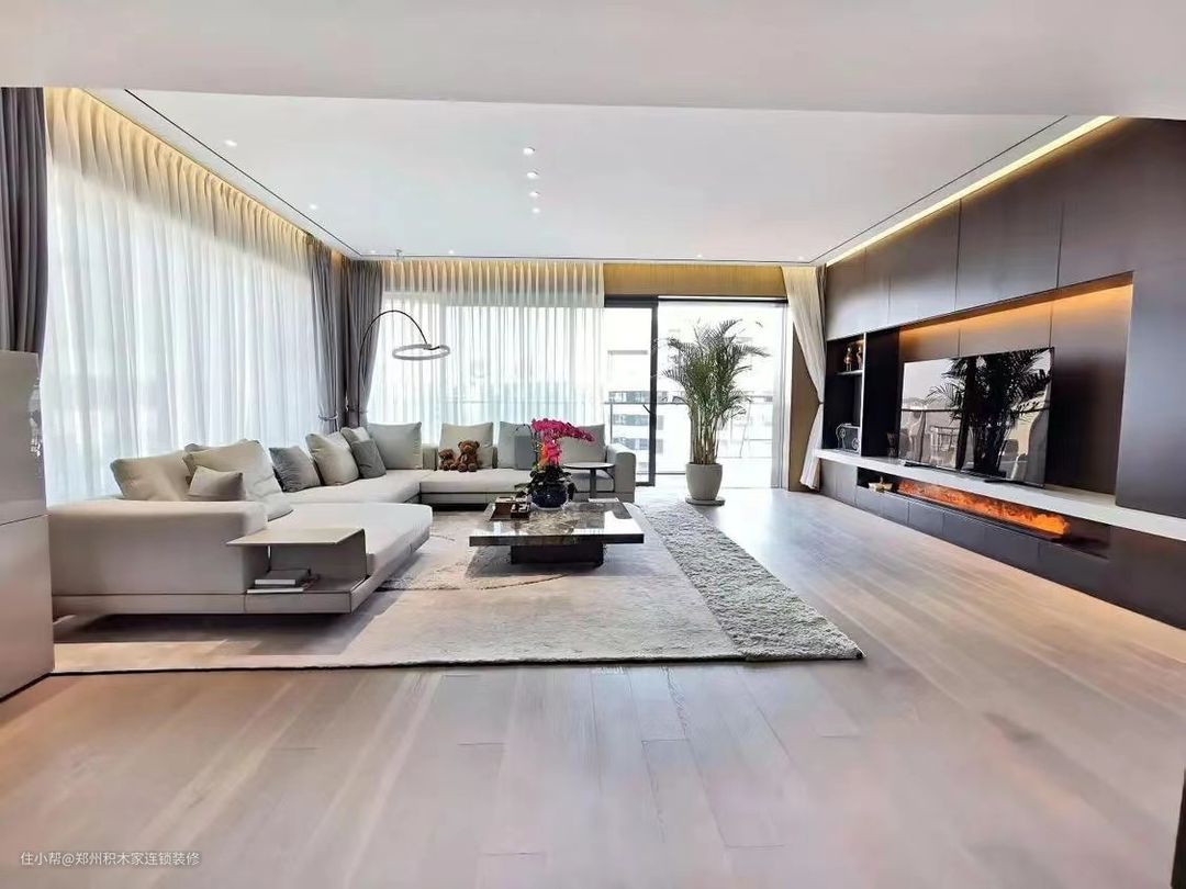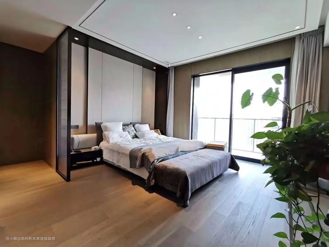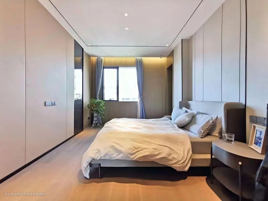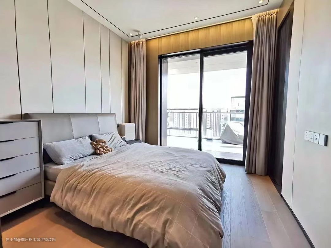 1. 本案例选择大面积的落地窗户,增加采光和视野,采用高质量的窗框材料,确保稳定性和耐久性。搭配简洁的窗帘,以保持现代风格。遮光窗帘,可调节光线和保护隐私。 2.选择简洁、线条流畅的现代风格家具。以高品质的木地板或石材地板,增加质感。添加一块简约的地毯,增加舒适感。 3.墙面选择素色有质感的墙面材料,保持简洁。选择少量而精致的摆件,避免过于繁杂。 4.配色以简洁的中性色调为主,搭配一些明亮的点缀色,让空间更高级。