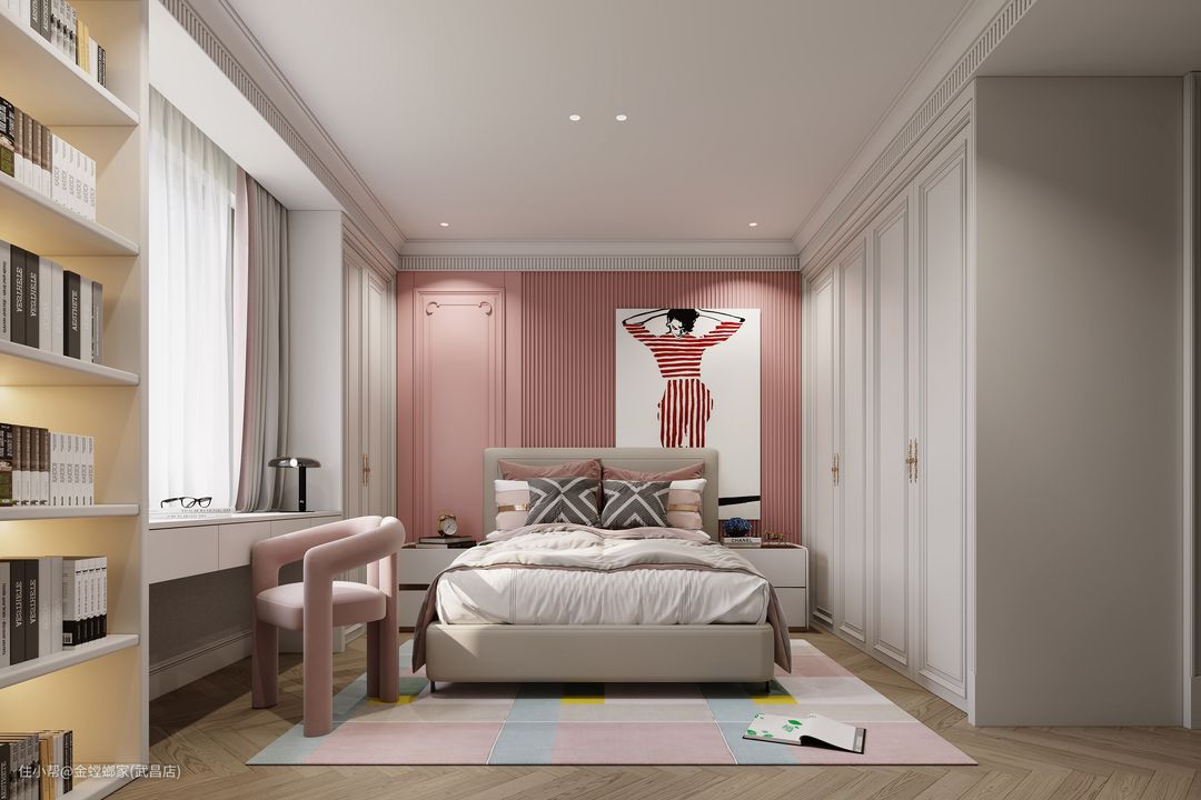 女儿房和主卧都采用柔和舒适的色调,整体呈现柔和淡雅的气质