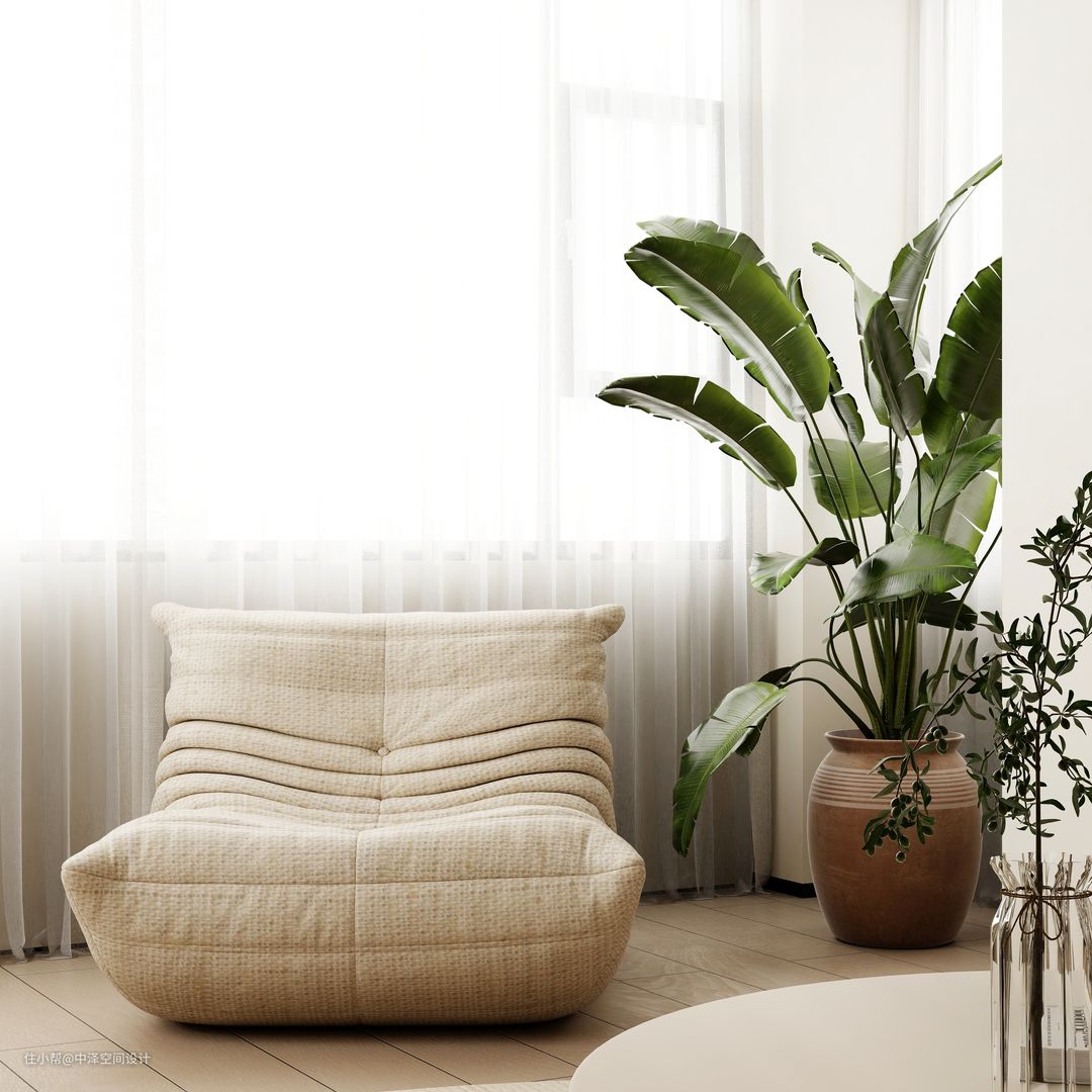 阳台以软装搭配为主 没有做过多的改造 懒人沙发搭配绿植 慵懒且放松