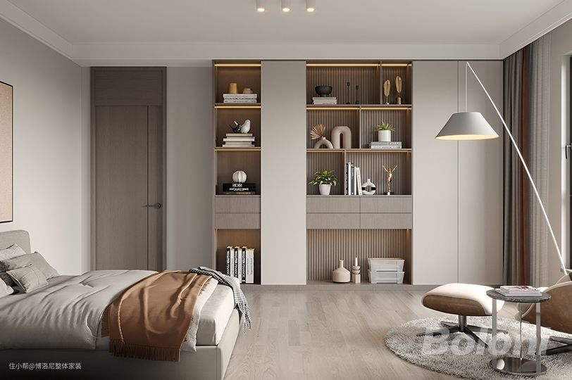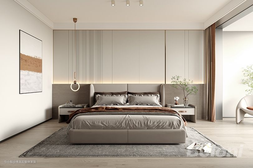 在软装上更加纯粹,造型更加简单,将舒适感和功能性更多体现出来。与客厅颜色搭配形成一致。