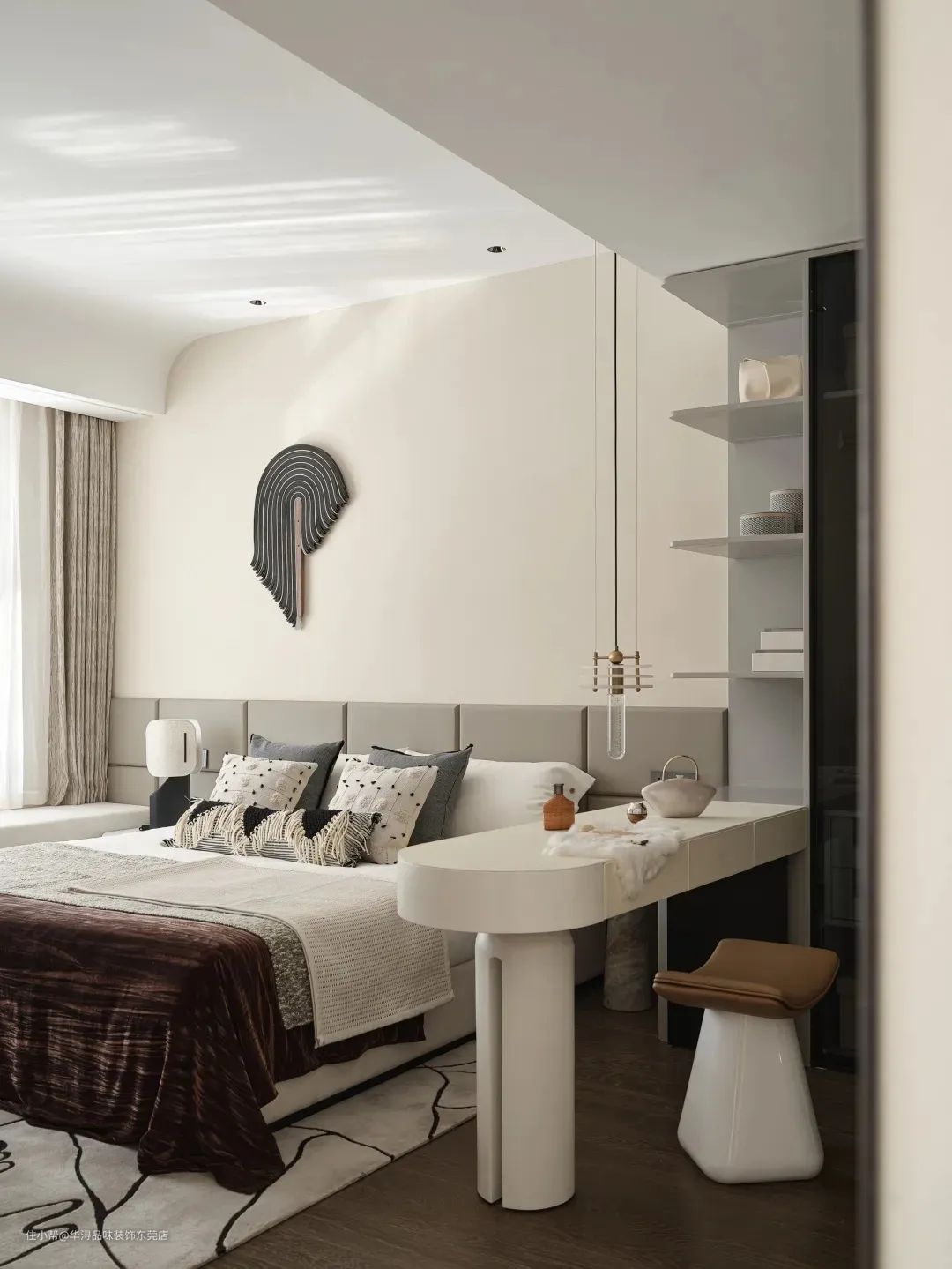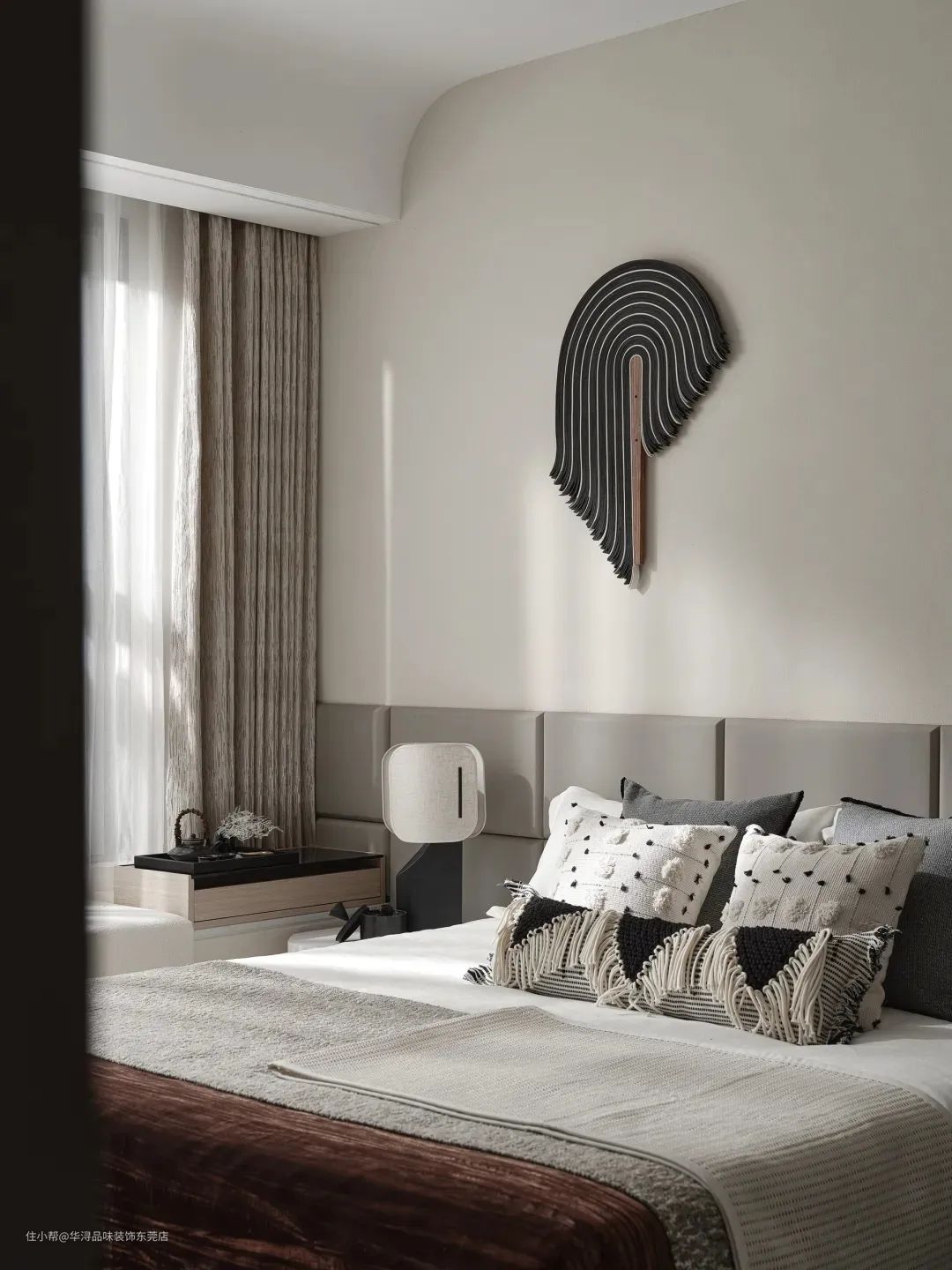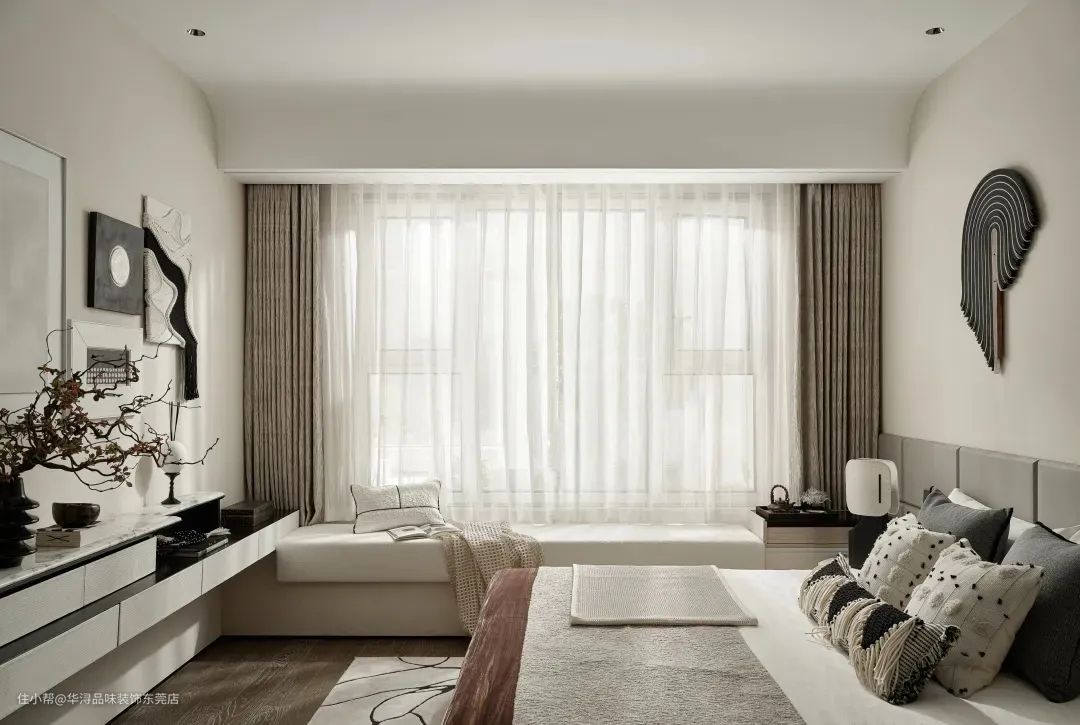 主卧的设计以宁静和舒适为主题,致力于打造一个让屋主得以放松身心的私密空间。每一寸空间都透露出平和与温馨,使屋主在其中能够享受到最纯粹的宁静与安逸。
