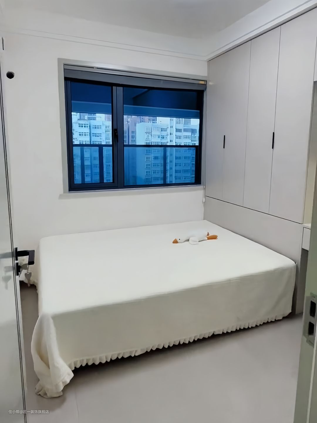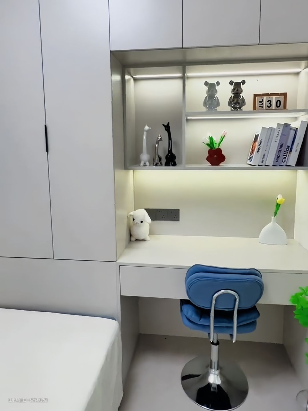 小卧室做榻榻米床,书桌、衣柜一体设计,方便储物和居住。