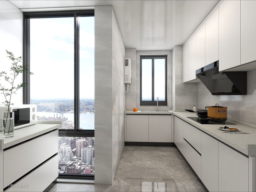 厨房则是现代化的简约白色,干净大方同时也好打理。