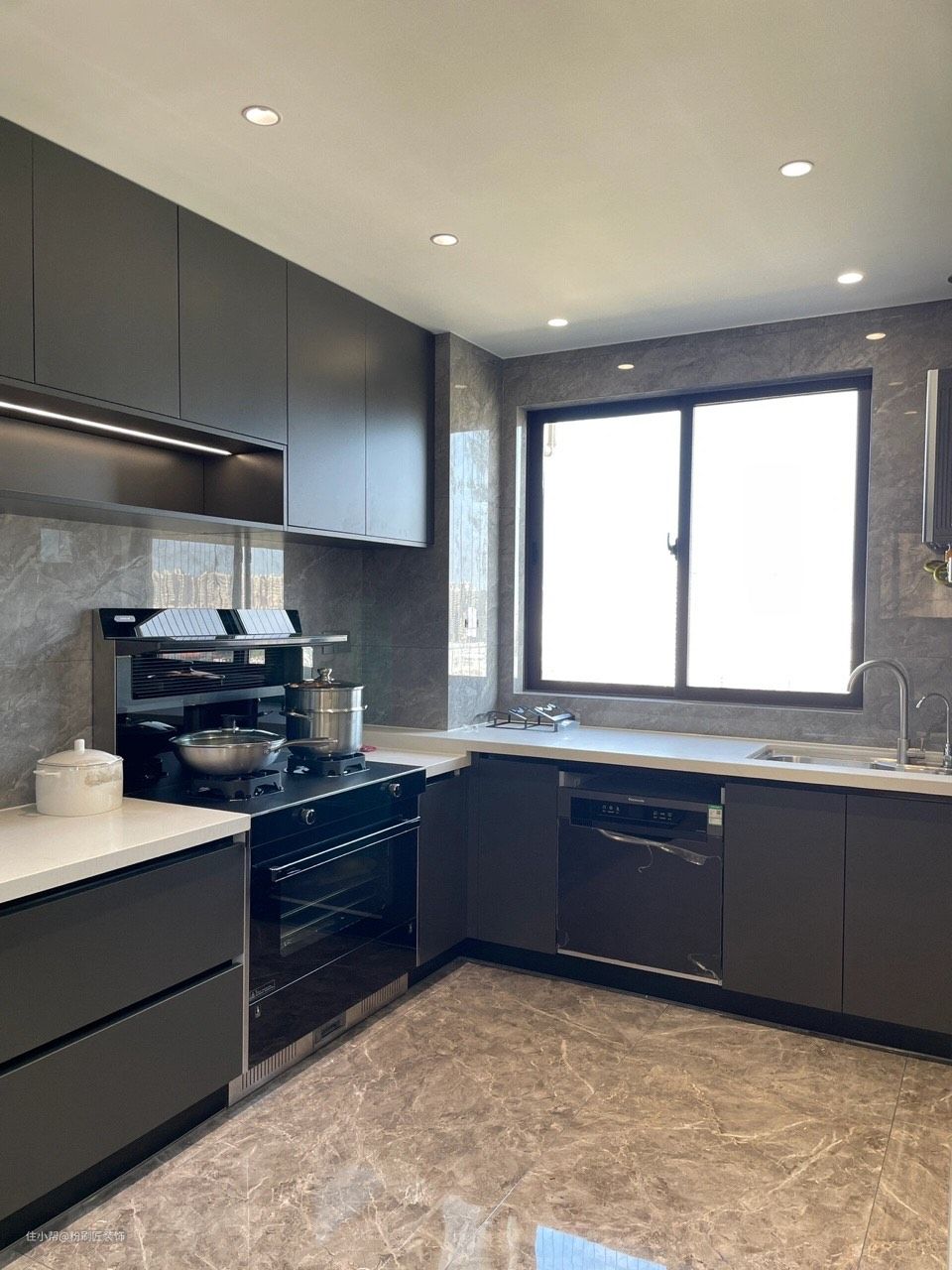 开放式厨房的设计在选择灶具上 选择了集成灶 它不仅在吸烟功效上比分体灶更优秀 下面还可以做碗篮或者蒸烤箱 做到一物多用,更加实用 水槽侧面安装洗碗机 减少工作量 高低台面根据业主的身高进行设计 更加方便不会因为高度不合适而更加劳累 原有的厨房推拉门位置坐吧台 下方做柜体 同时可以坐上去吃早饭 更加方便