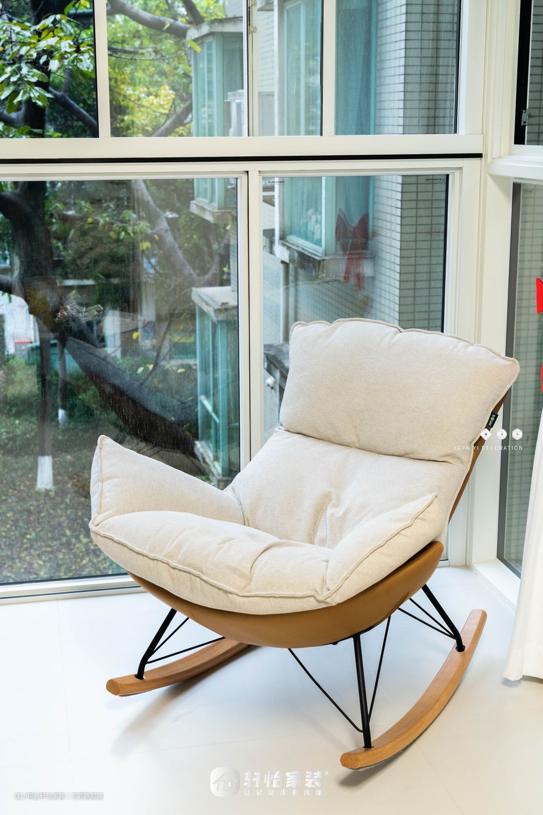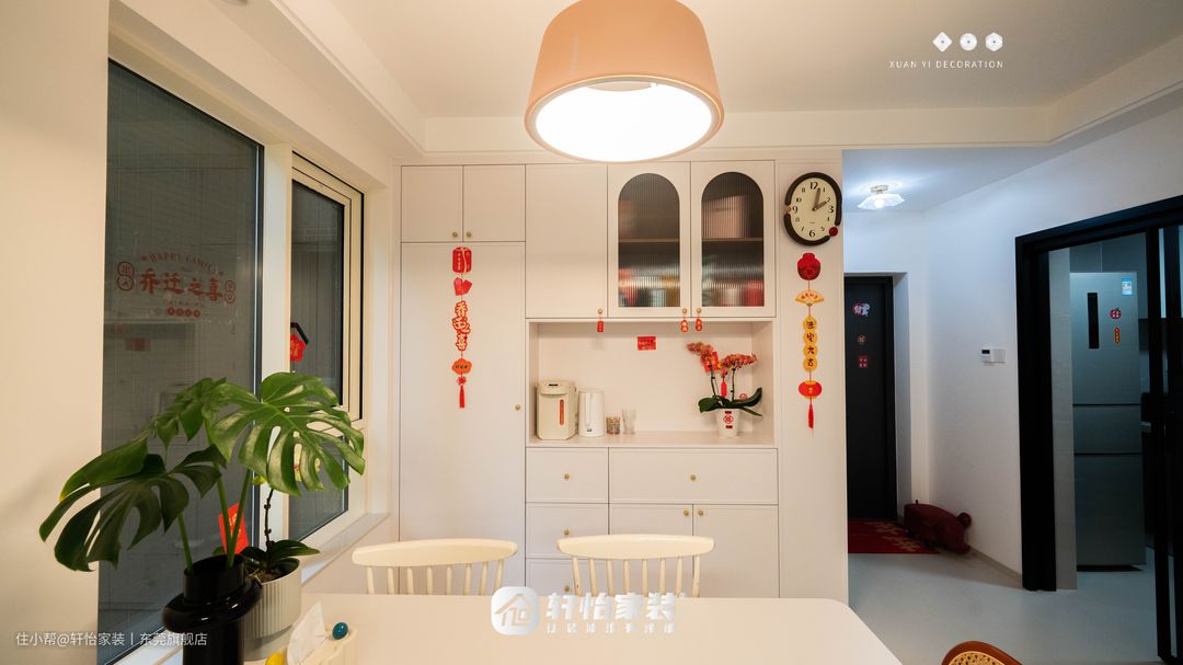 空间起承转合排布居住者的生活,牵引着从“闹”至“静”的状态转变。主卧开窗打开立面,玻璃通透弱化墙体实在,上演虚实相合之美。 床尾通顶柜站立,组合多种收纳式样,将四季衣物妥善单排。云朵顶灯是居住者内心少年意的具象化,呈现出“生活寻常而家不寻常”的追求。