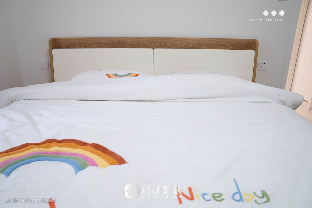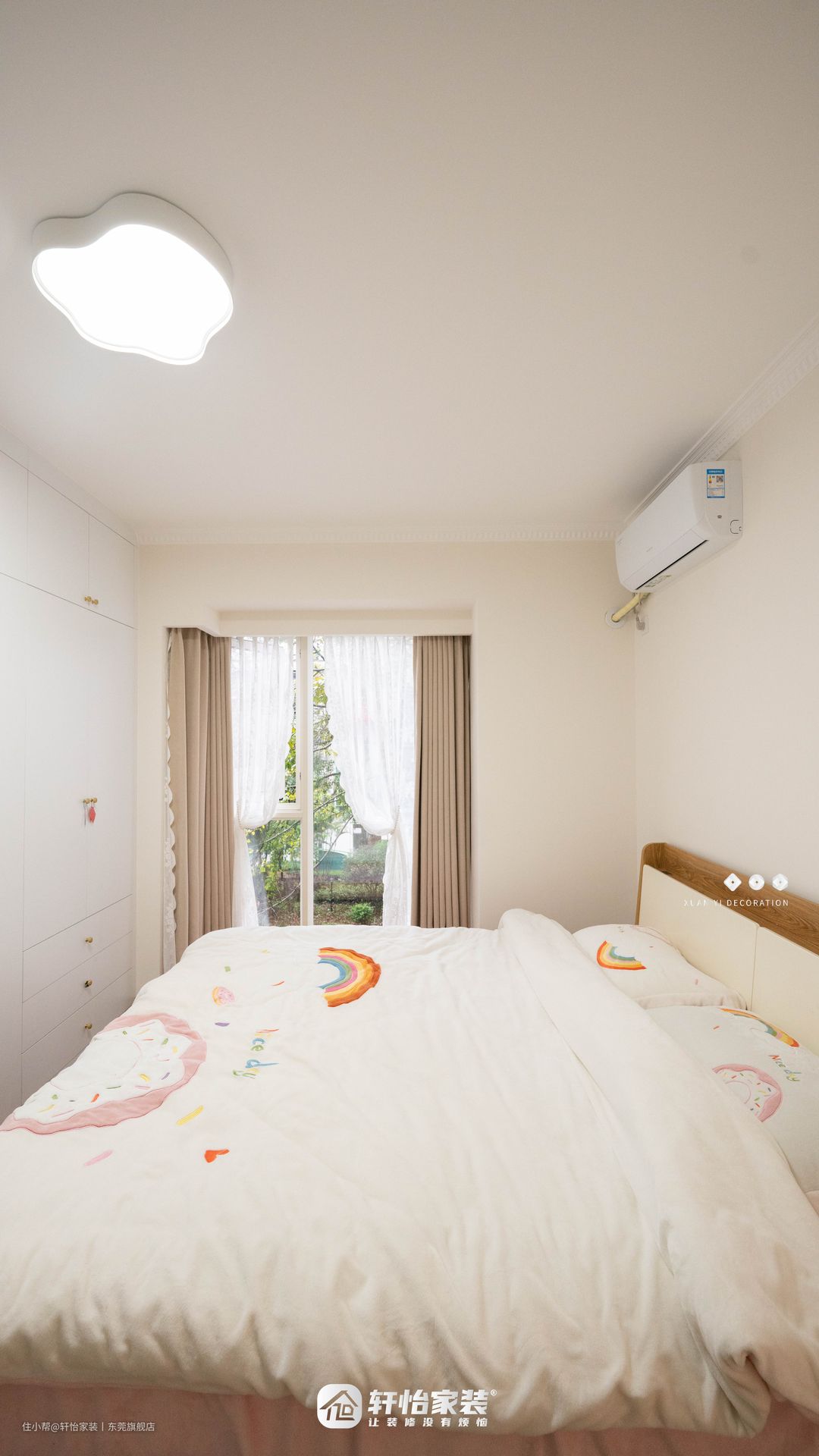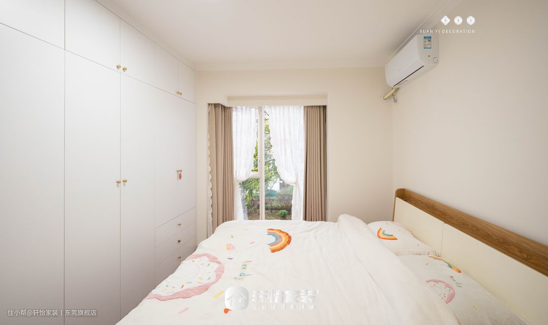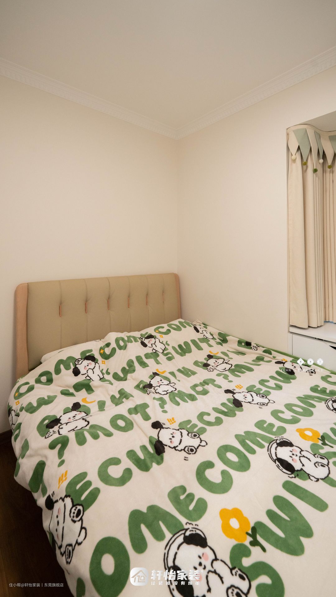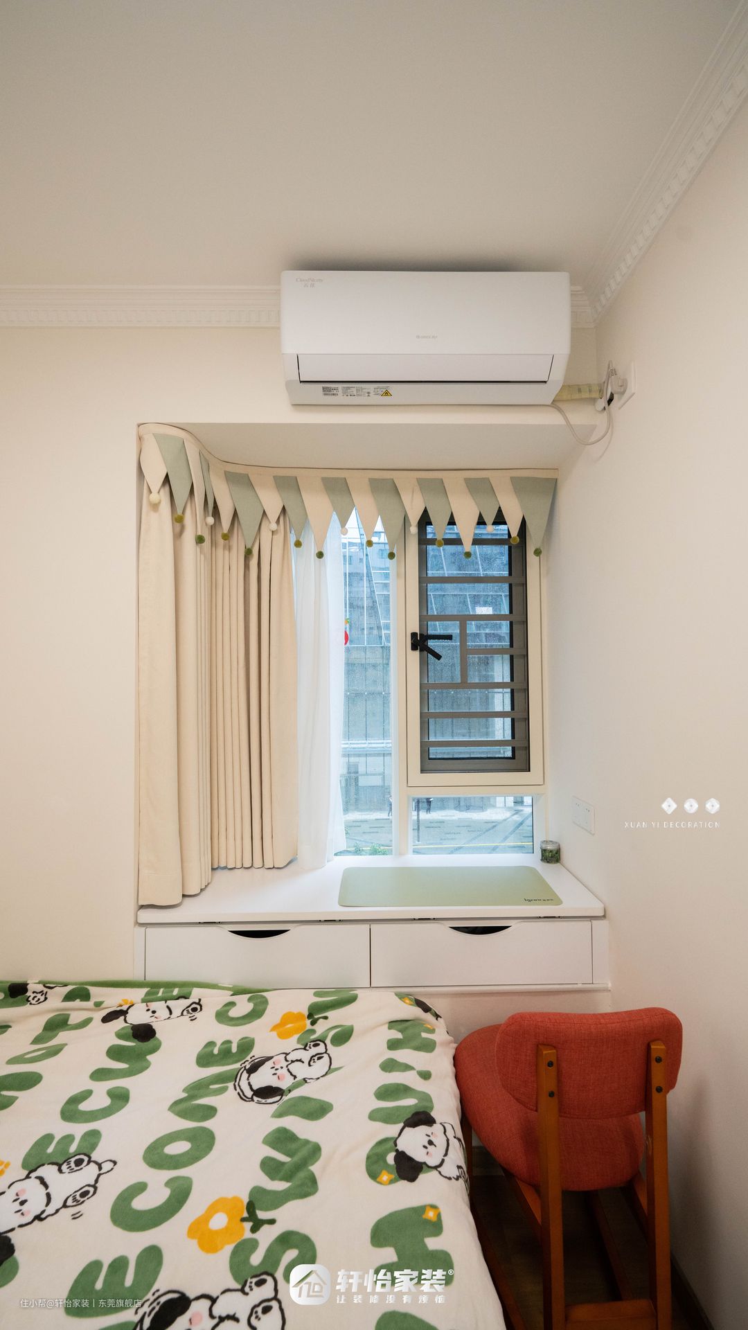 儿童房未做过多童趣元素引入,仅在窗帘做少许创意,留出充足调整空间。飘窗借由抽屉抬高改造为书桌,打造功能区,实现空间复用。