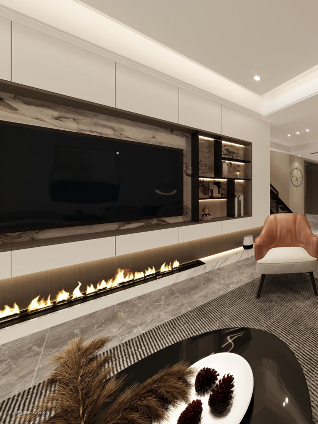 本案是老小区翻新设计 厨房小,客厅细长的弊端如何规避❓ 房间大该如何规划达到利用率满分❓ 🔆客厅区: 客厅也是通长的结构,阳台打开采光✨更好 楼梯正对区域打造整排柜体避免空间浪费 电视背景墙也做成整墙虚实柜体增加收纳 悬浮式设计+电子壁炉打破空间的沉闷感⚡️