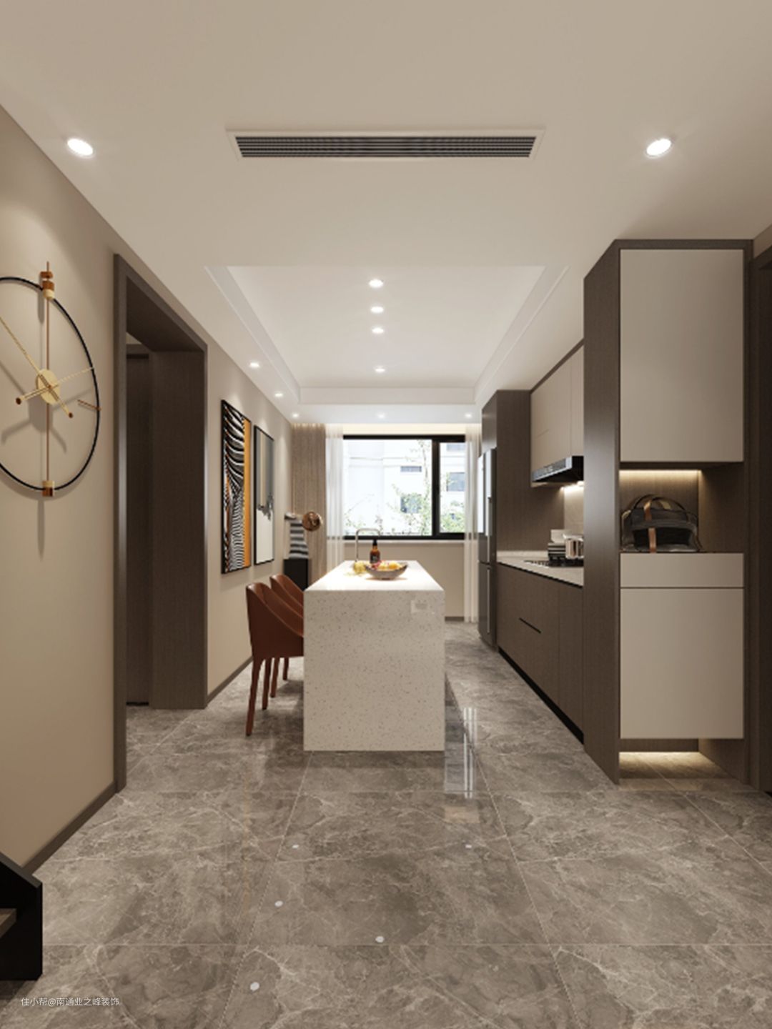 🔆餐厨区: 本案作为老小区改造,厨房区域较为狭长🚫 入户玄关跟开放式厨房吧台做一体化设计 吧台式餐桌嵌入水槽,吧台也可做操作台💯