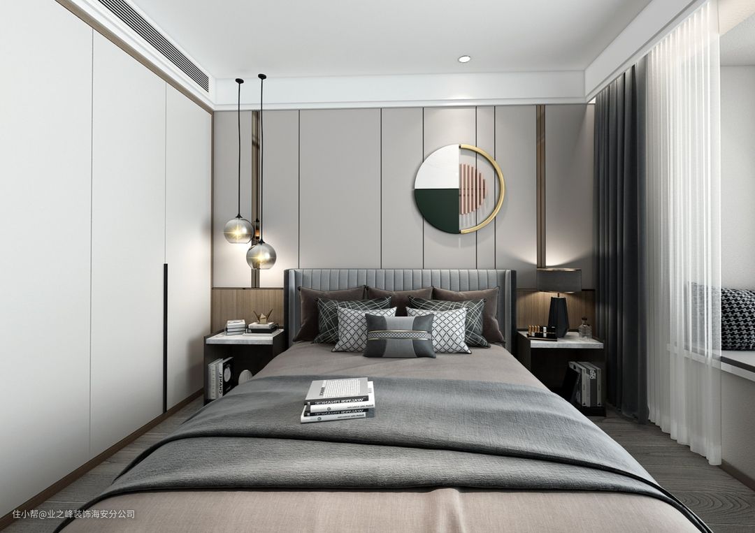 🤍卧室区 🌱主卧套间延续客餐厅的风格,米白色护墙板用金色线条造型,线性吊顶让空间层次感更高,隔断衣帽间,满足女主人👩🏻🦰收纳需求,同时形成流畅自由的行走动线