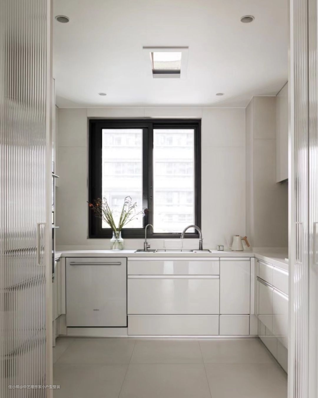 敞亮的U型厨房依据下厨动线布局,清洗、备餐、烹饪都有各自独立的工作区,每个功能区之间的切换只需转个身即可完成,下厨更省力。