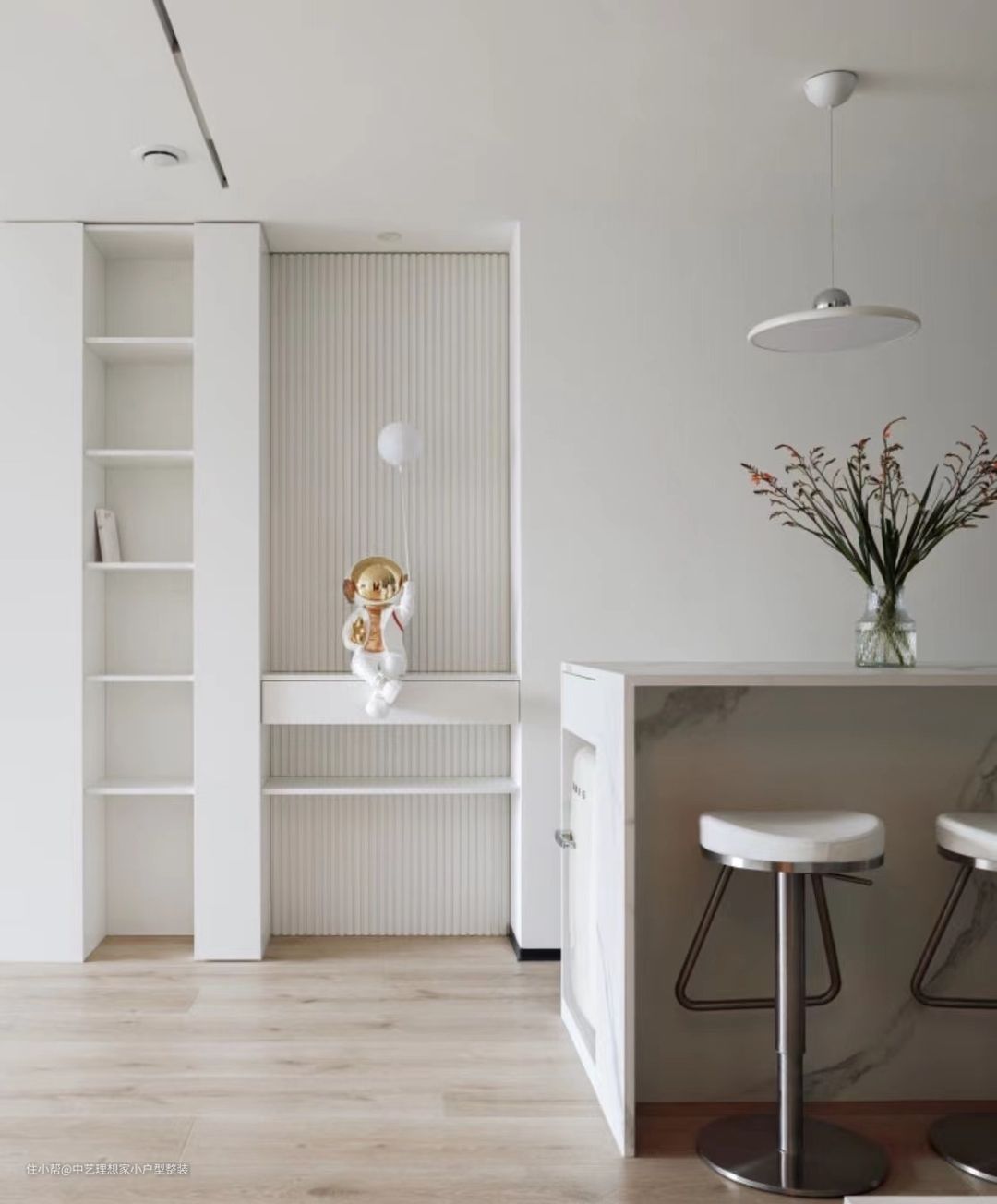 儿童房就在主卧对面,尽可能的做了留白处理,保证未来空间的灵活可变性,等待小朋友再大一点,可以根据他的喜好更新迭代现有的空间设计。